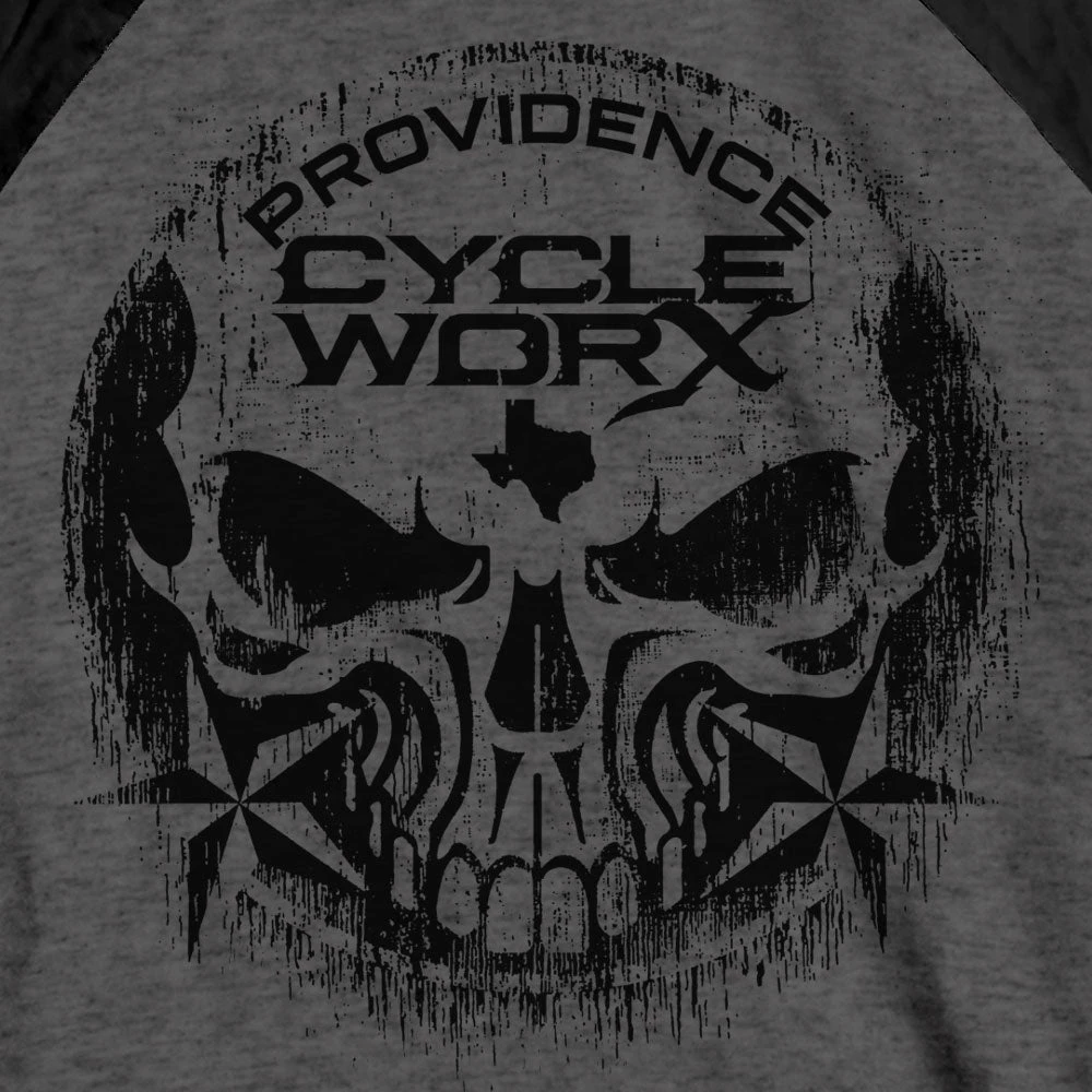 Hot Leathers PWM2002 Official Providence Cycle Worx Skull Raglan Charcoal Black 3/4 Sleeve Shirt