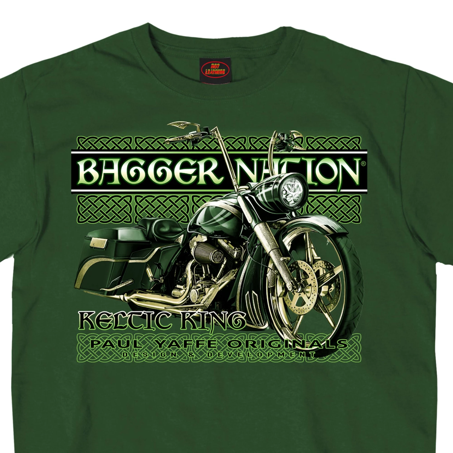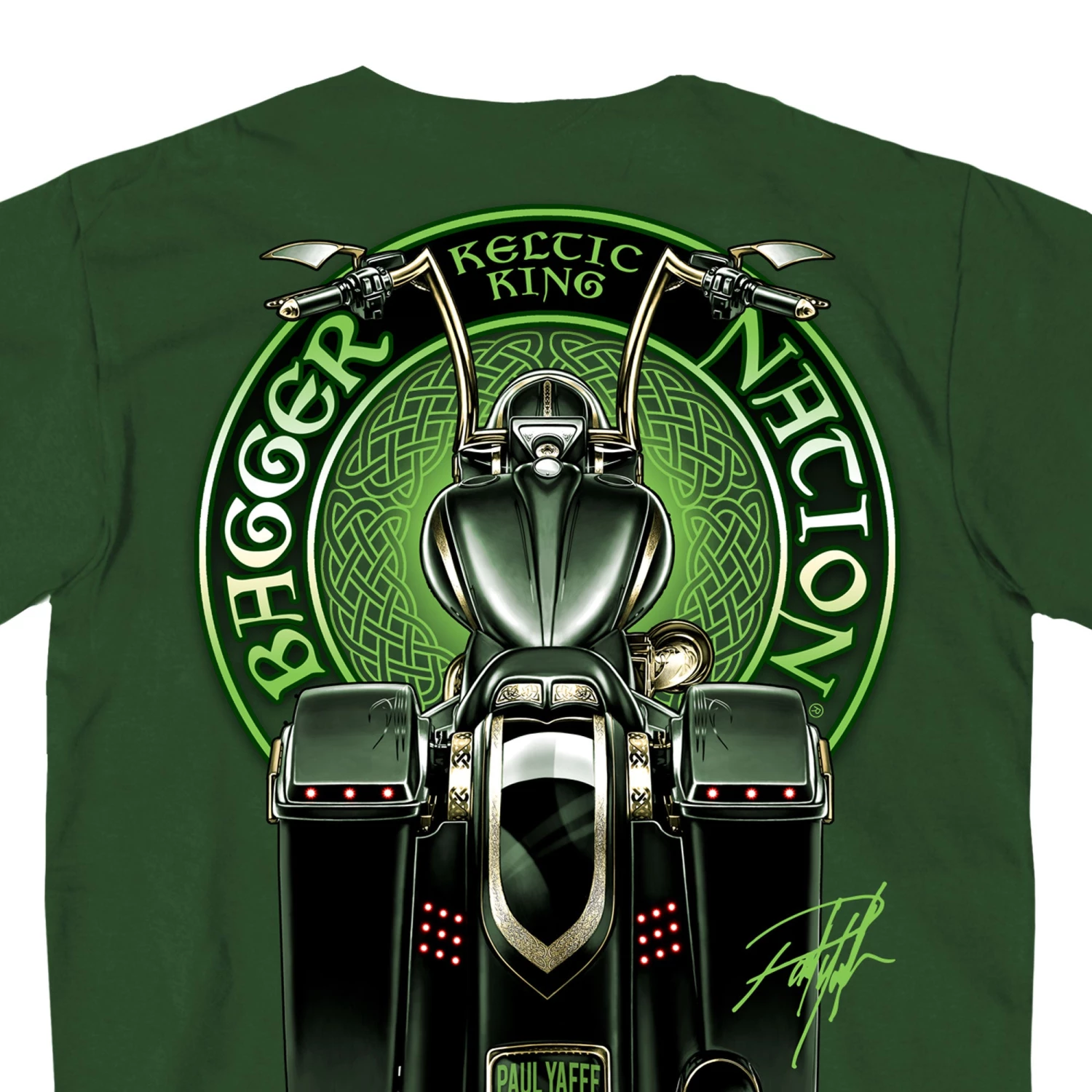 Hot Leathers PYM1031 Official Paul Yaffe’s Bagger Nation Keltic King Two Sided Mens Forest Green T-Shirt