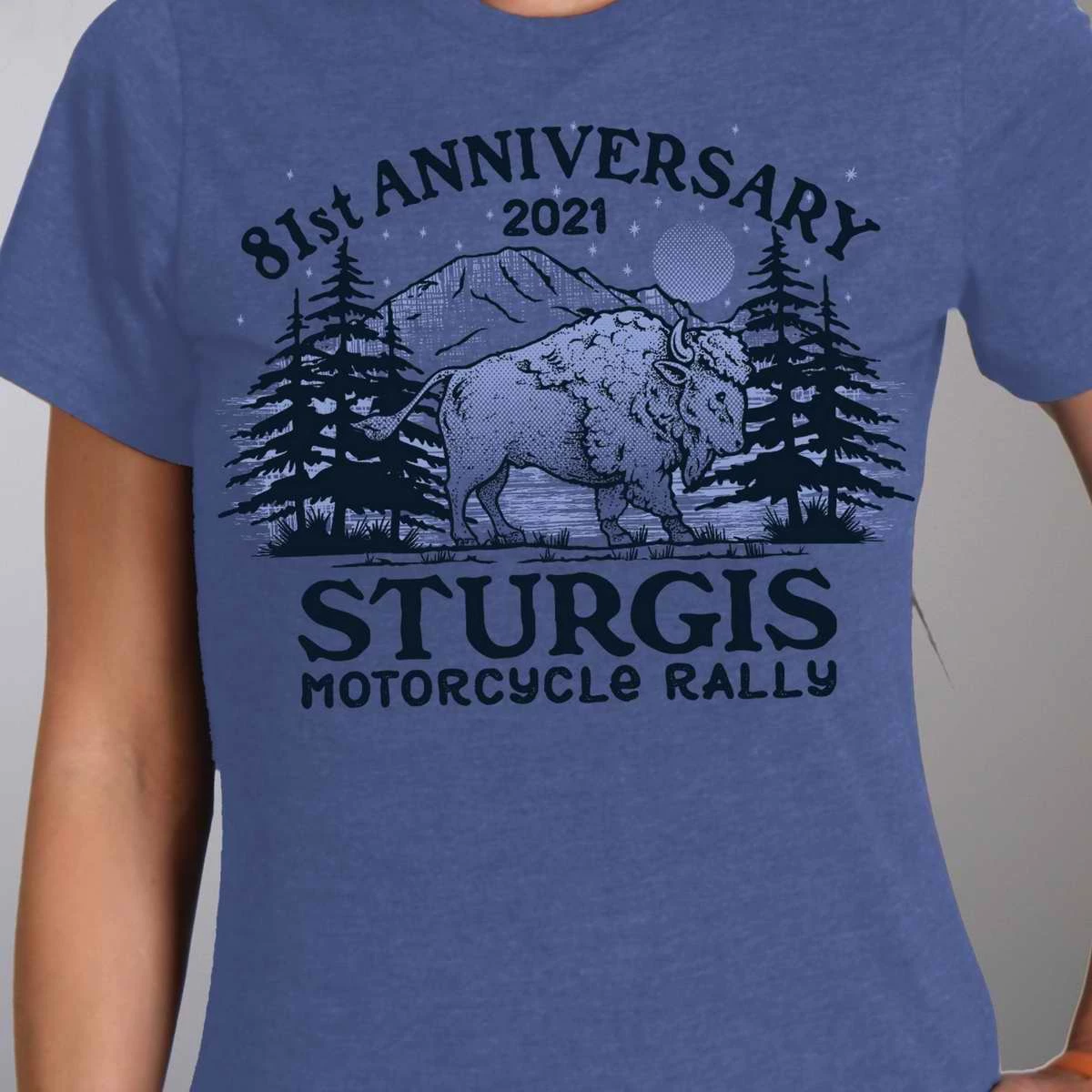Official 2021 Sturgis Motorcycle Rally SPL1748 Ladies Heather Blue Camp T Shirt