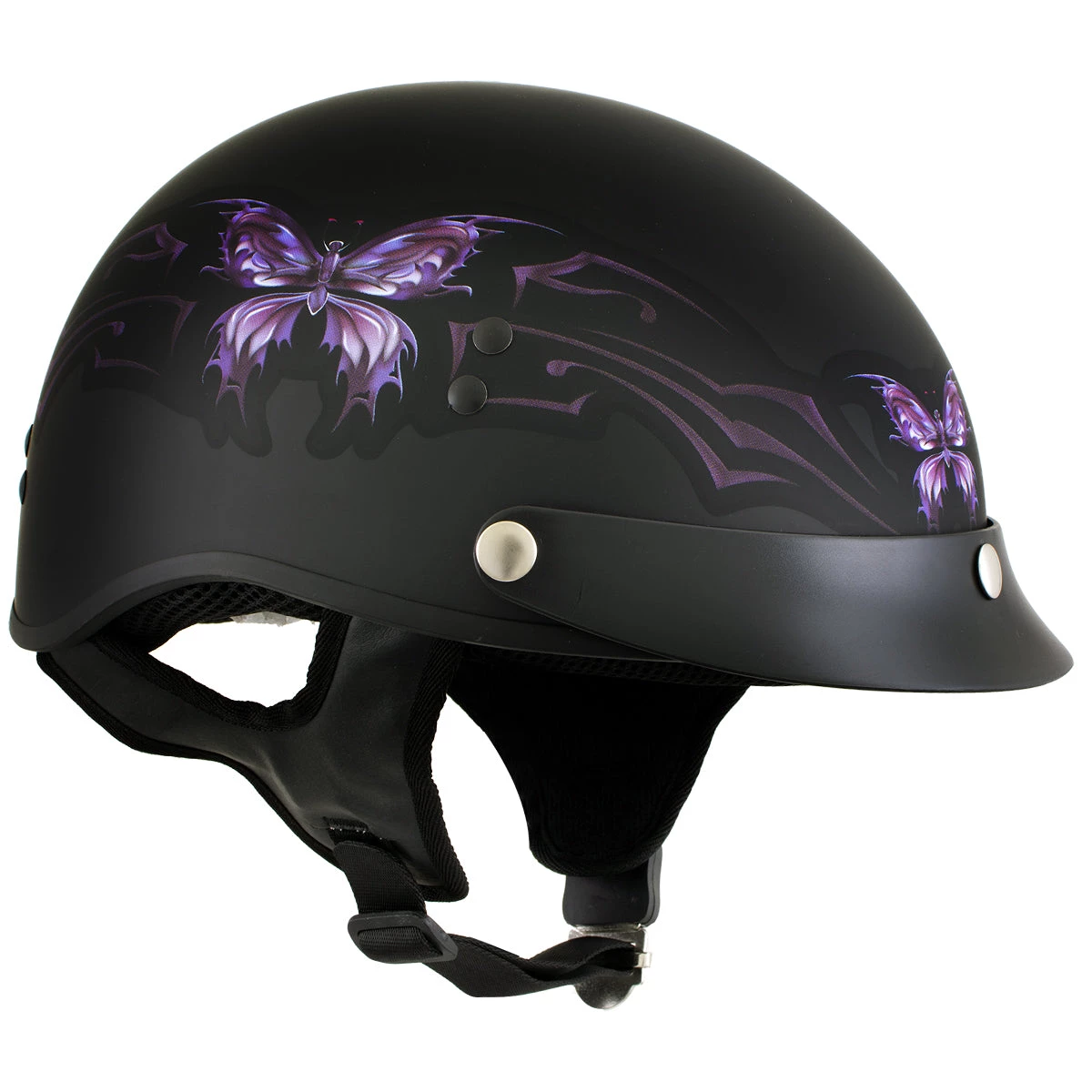Hot Leathers T70 ‘Purple Butterfly’ Advanced DOT Flat Black Motorcycle Half Face Helmet