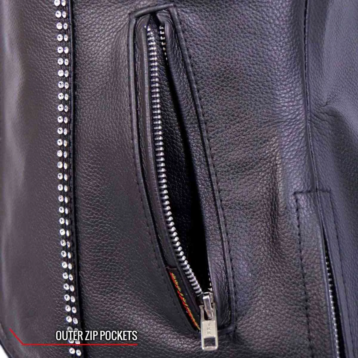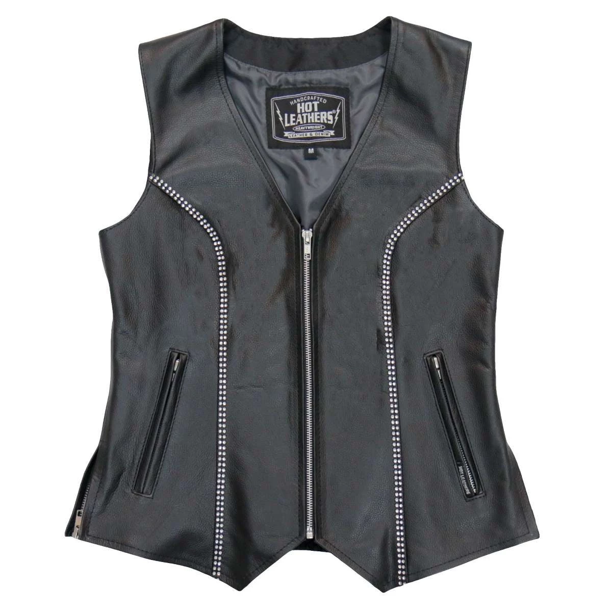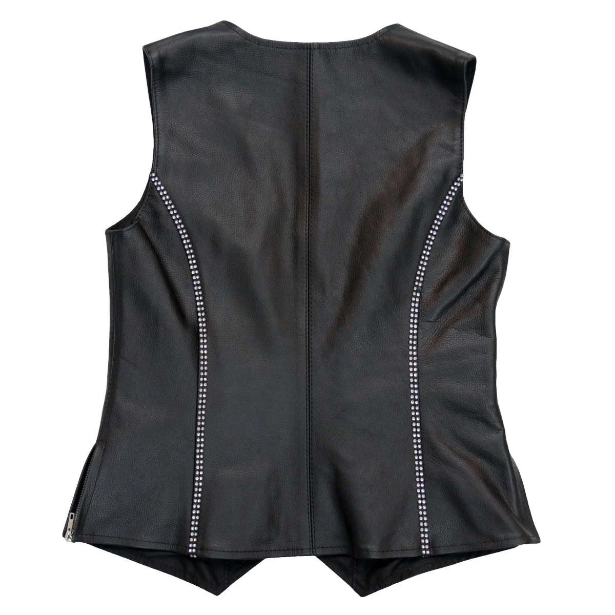 Hot Leathers VSL1016 Ladies ‘Rhinestone’ Black Leather MC Vest