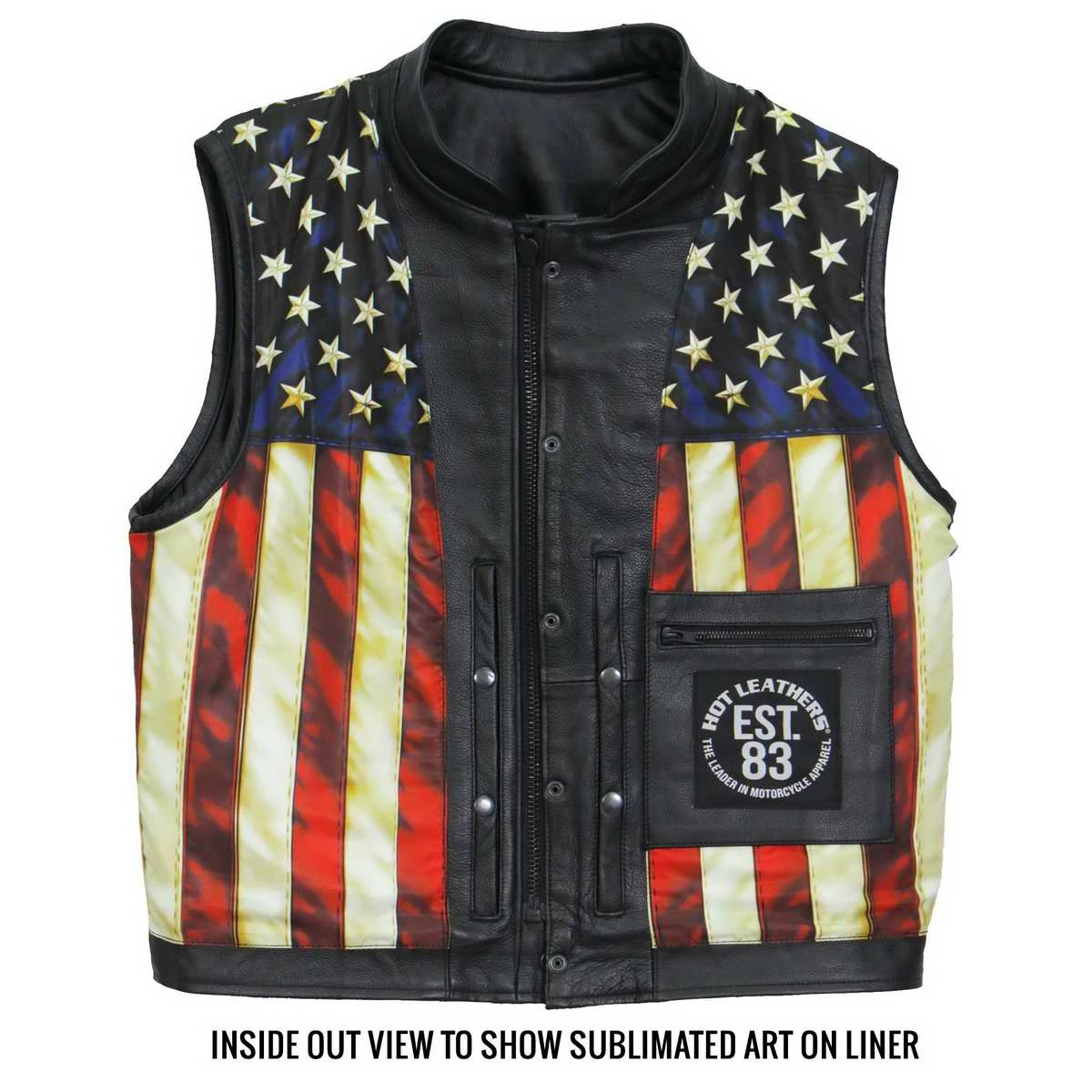 Hot Leathers VSM1056 Men’s Black ‘Vintage USA Flag’ Conceal and Carry Leather Vest