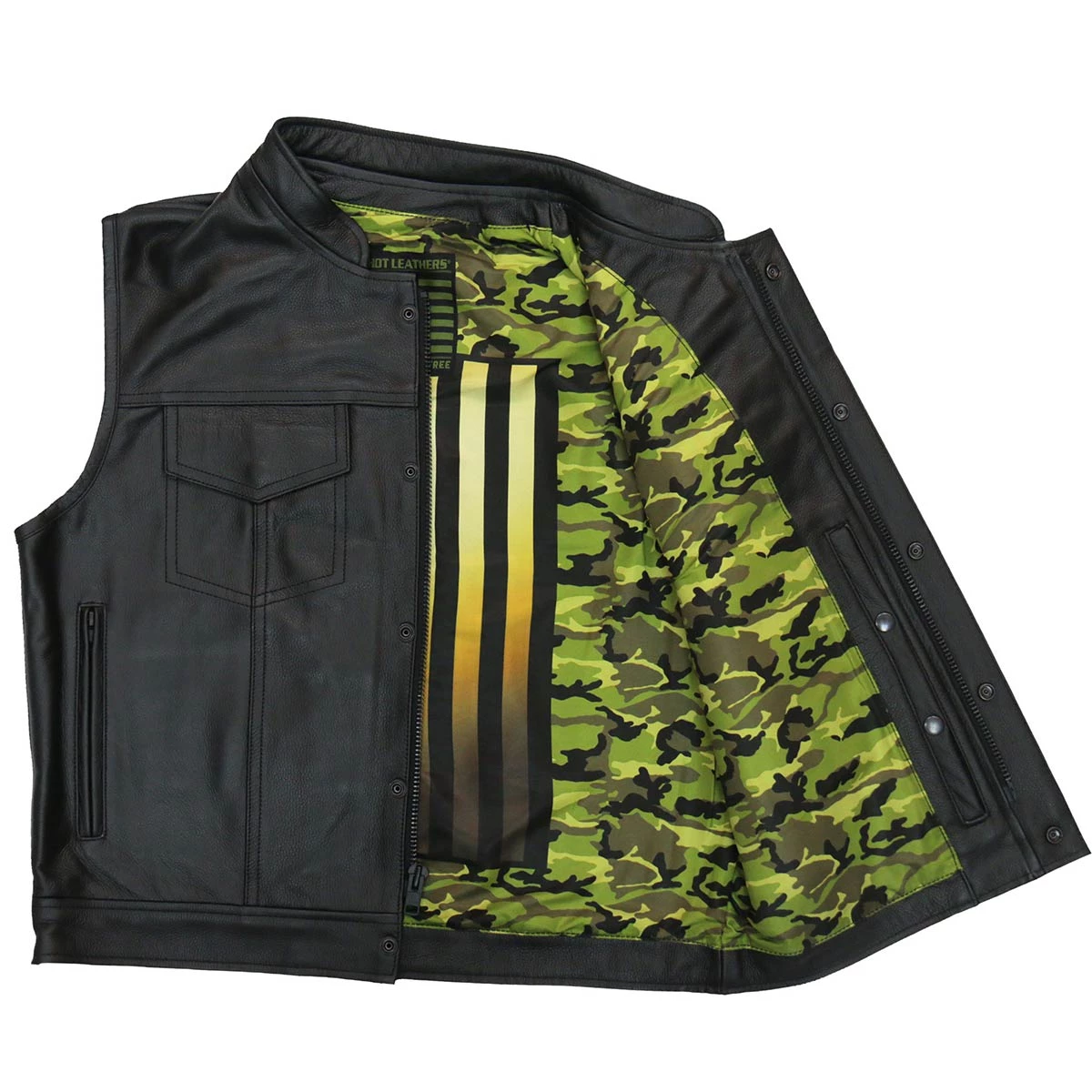 Hot Leathers VSM1058 Men’s Black ‘Camo Flag’ Conceal and Carry Leather Vest