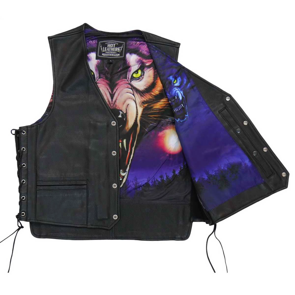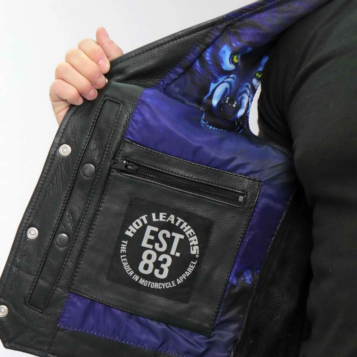 Hot Leathers VSM1062 Men’s Black ‘Lone Wolf’ Conceal and Carry Side Lace Leather Vest