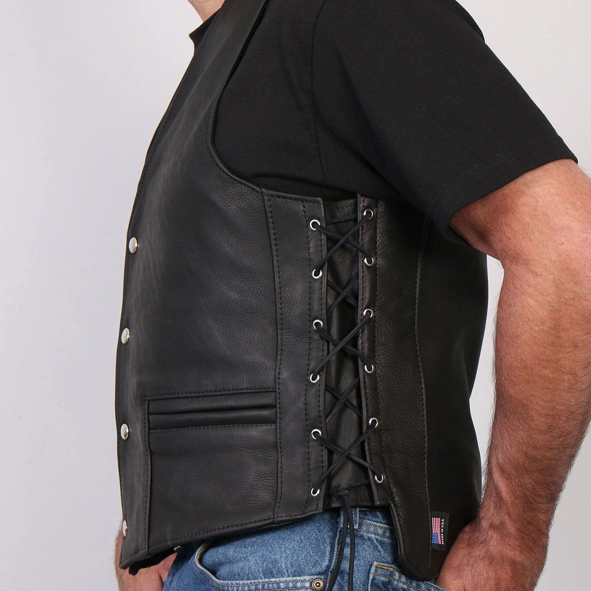 Hot Leathers VSM5003 Men’s USA Made Extra Long Back Premium Steerhide Leather Vest