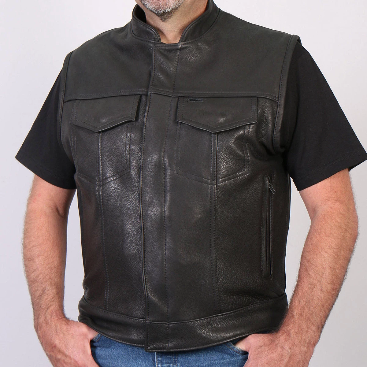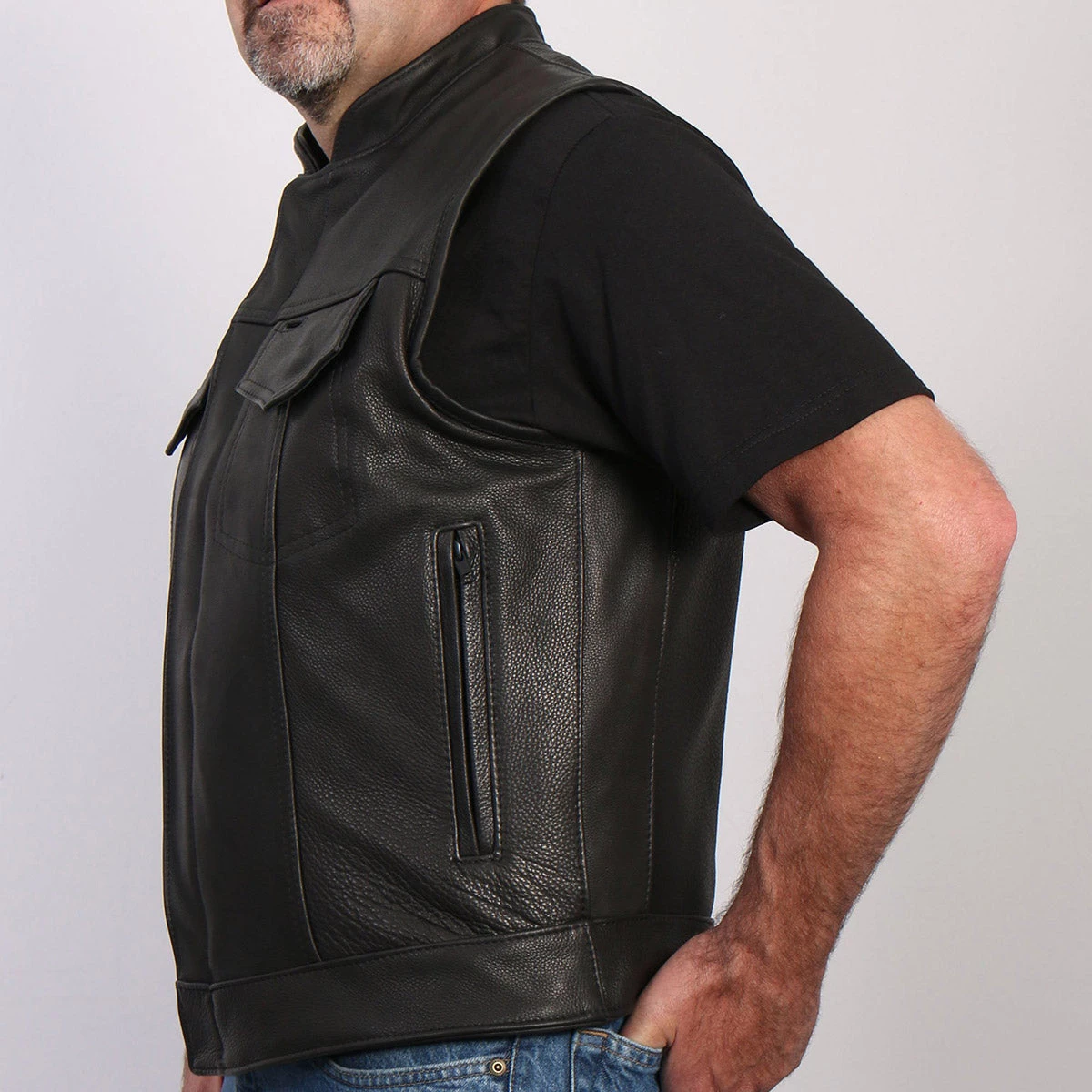 Hot Leathers VSM5004 Men’s USA Made Covered Zipper Premium Leather Vest
