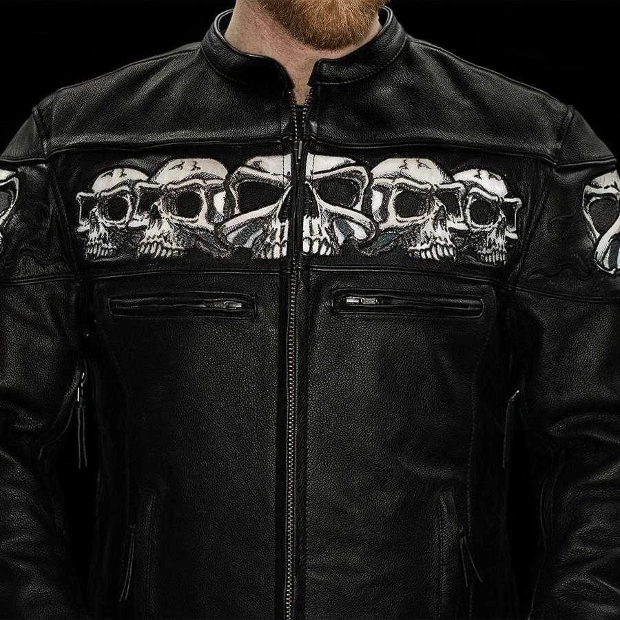 First Manufacturing FIM243CSIZ Men’s ‘The Savage Skulls’ Black Leather Jacket with Carry Conceal Pockets