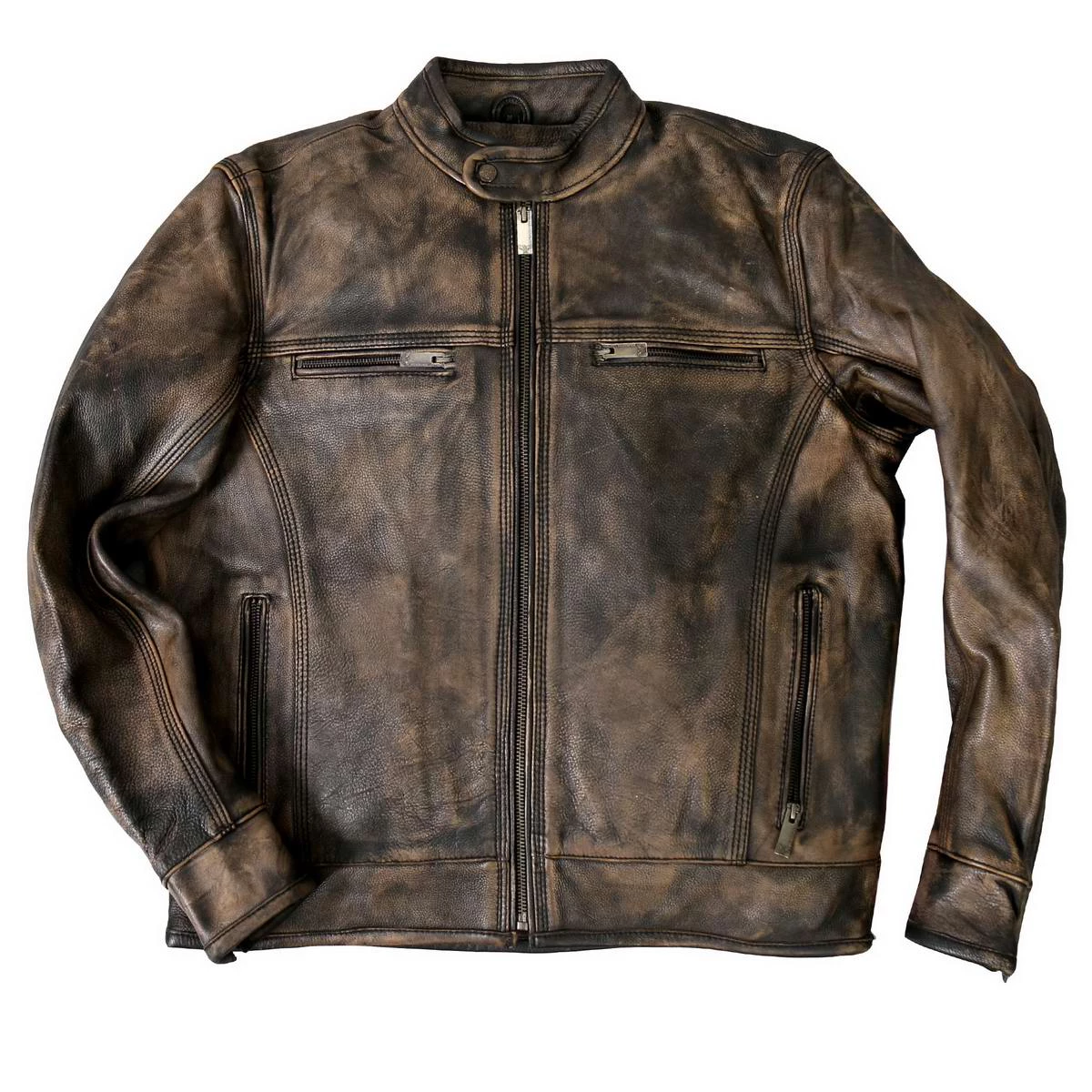 Hot Leathers JKM1019 Men’s Distressed Brown Leather Jacket with Gun Pockets