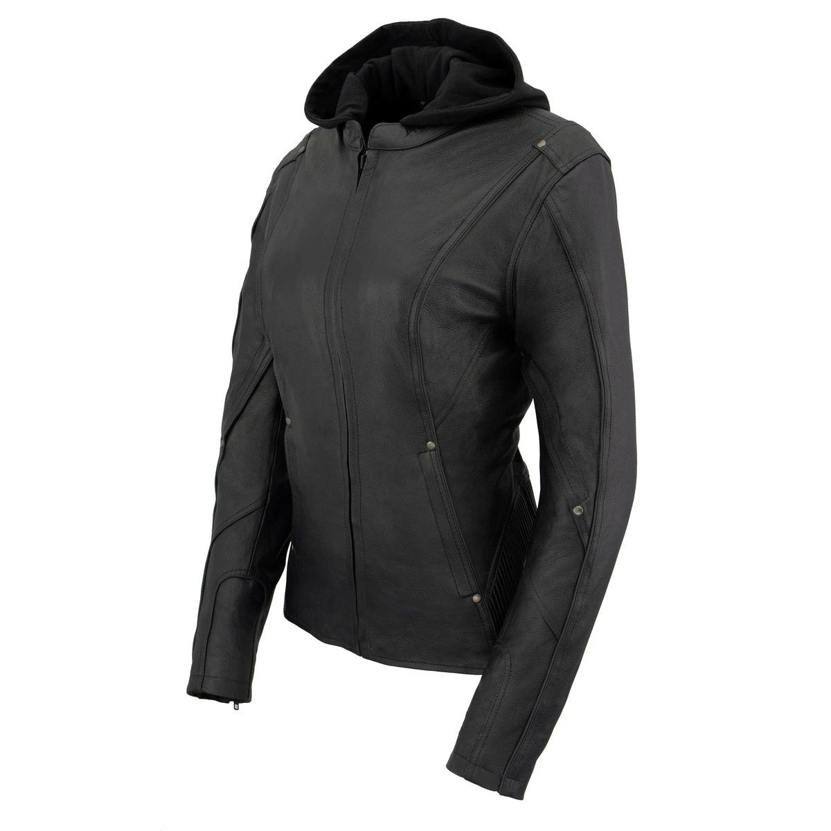 Milwaukee Leather MLL2555 Women’s Black 3/4 Hooded Leather Jacket With Side Stetch