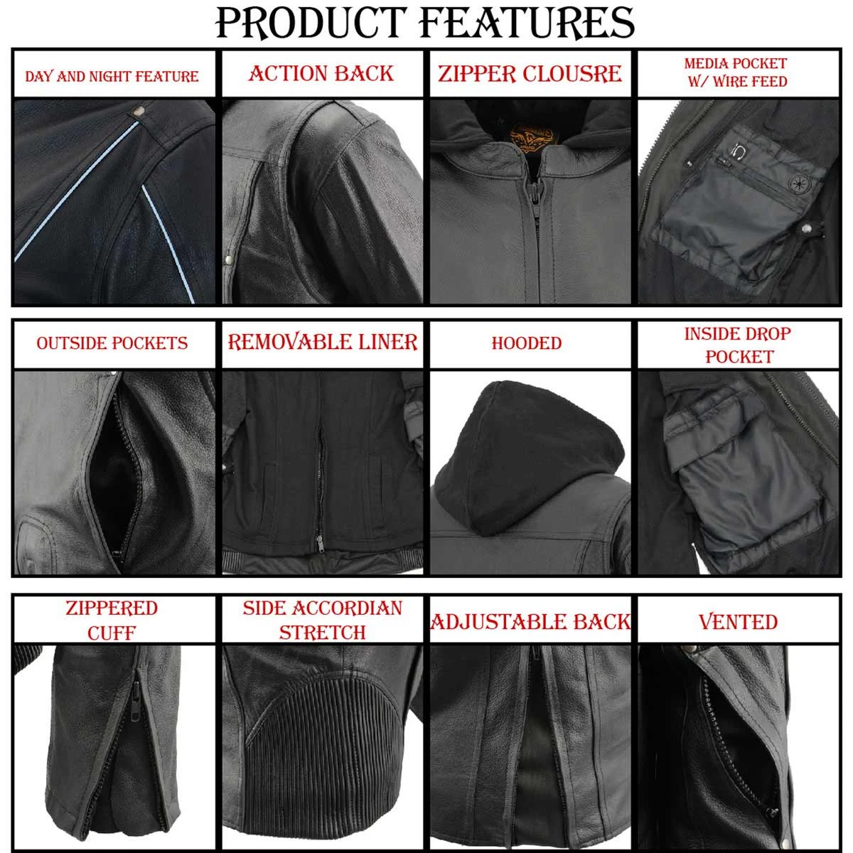 - Made of Premium Cowhide Leather with Reflective Piping Throughout
