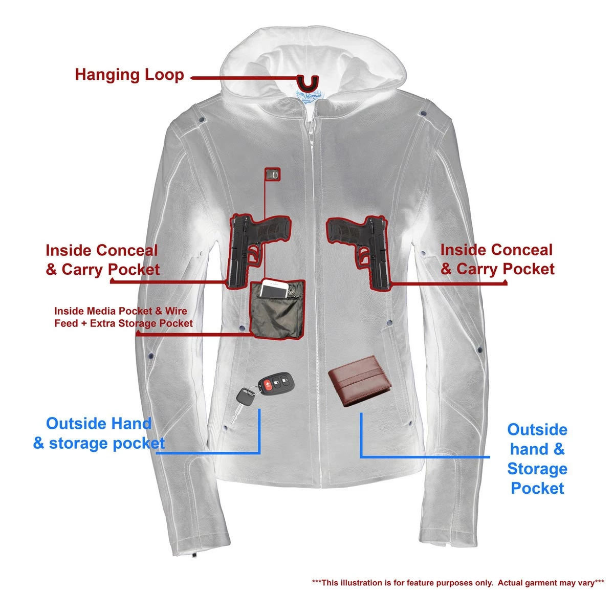 - Two Lower Zipper Hand Pockets with Arm & Back venting