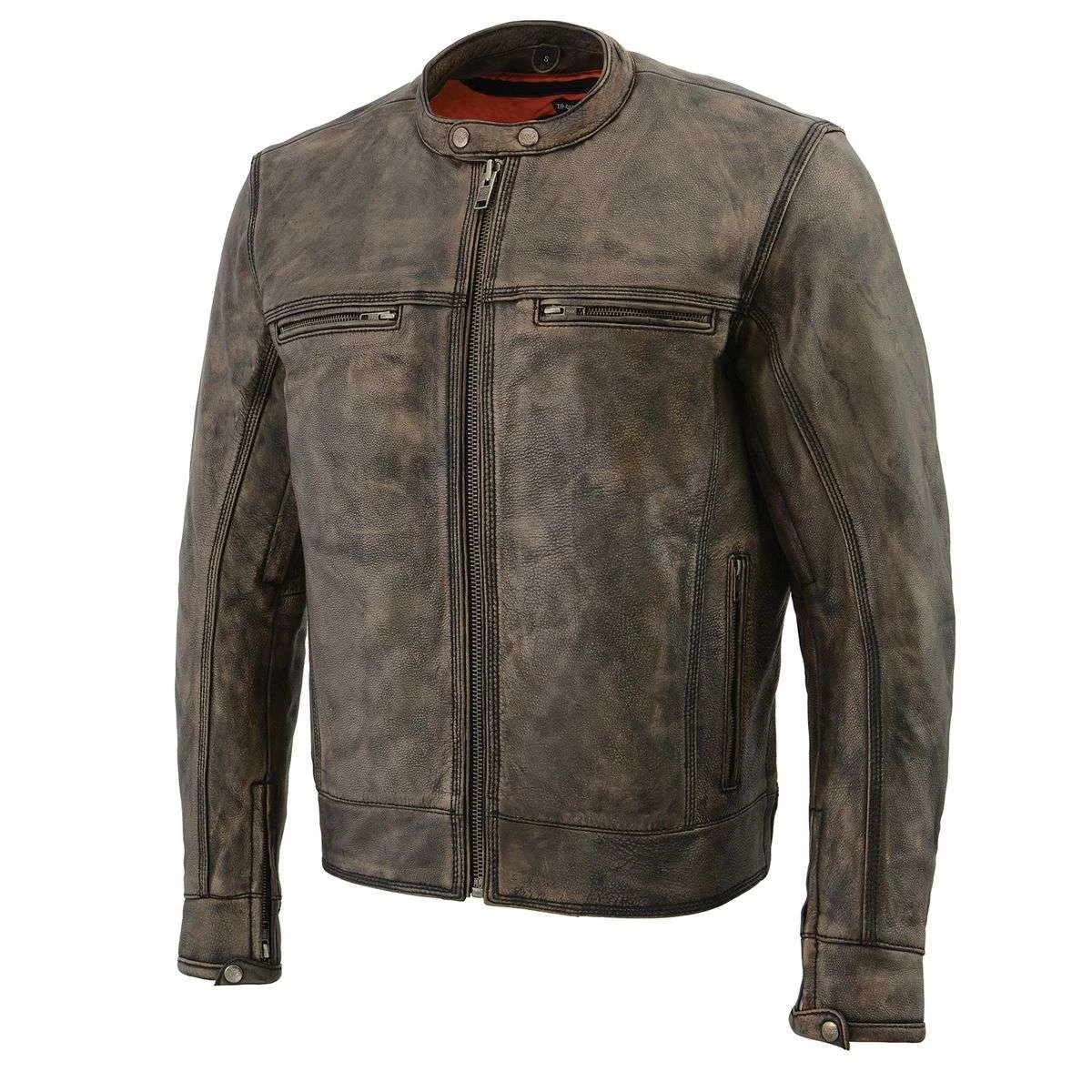 Milwaukee Leather MLM1550 Men’s Vented Black-Beige Distressed Leather Scooter Jacket