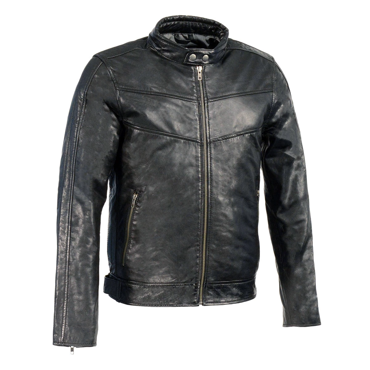 Milwaukee Leather SFM1835 Men’s ‘Café Racer’ Black Leather Jacket with Snap Button Collar