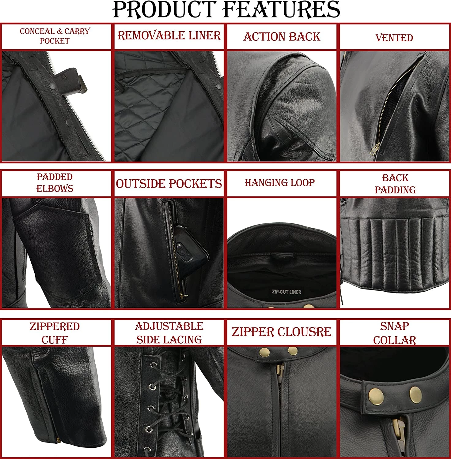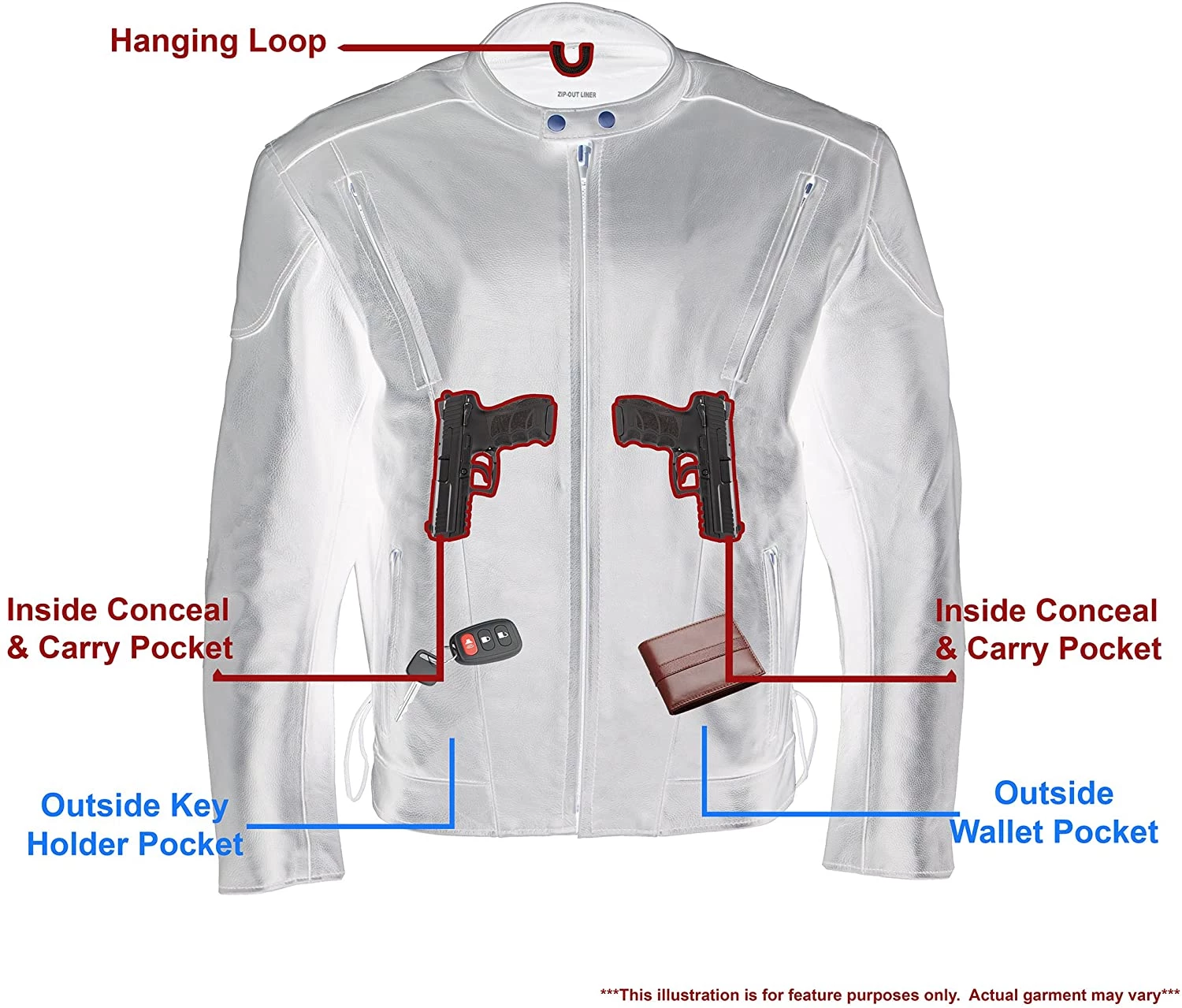 - Built in Dual Side Concealed Weapon and Ammo Pockets
