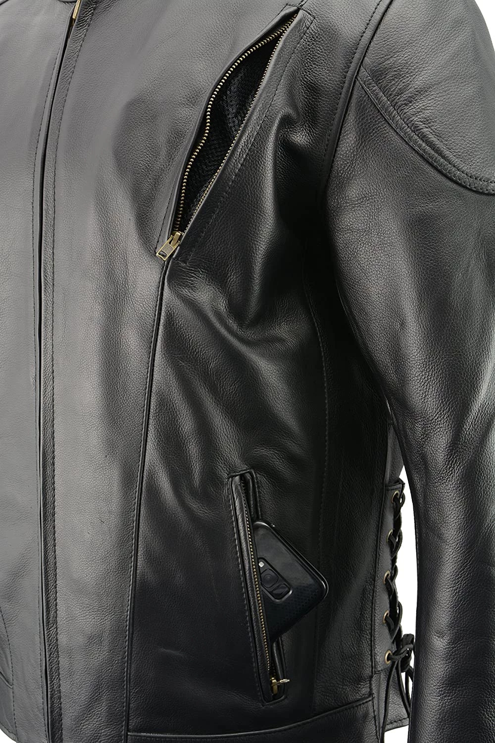 M-Boss Motorcycle Apparel BOS11510 Men’s ‘Speed’ Black Cowhide Motorcycle Leather Jacket