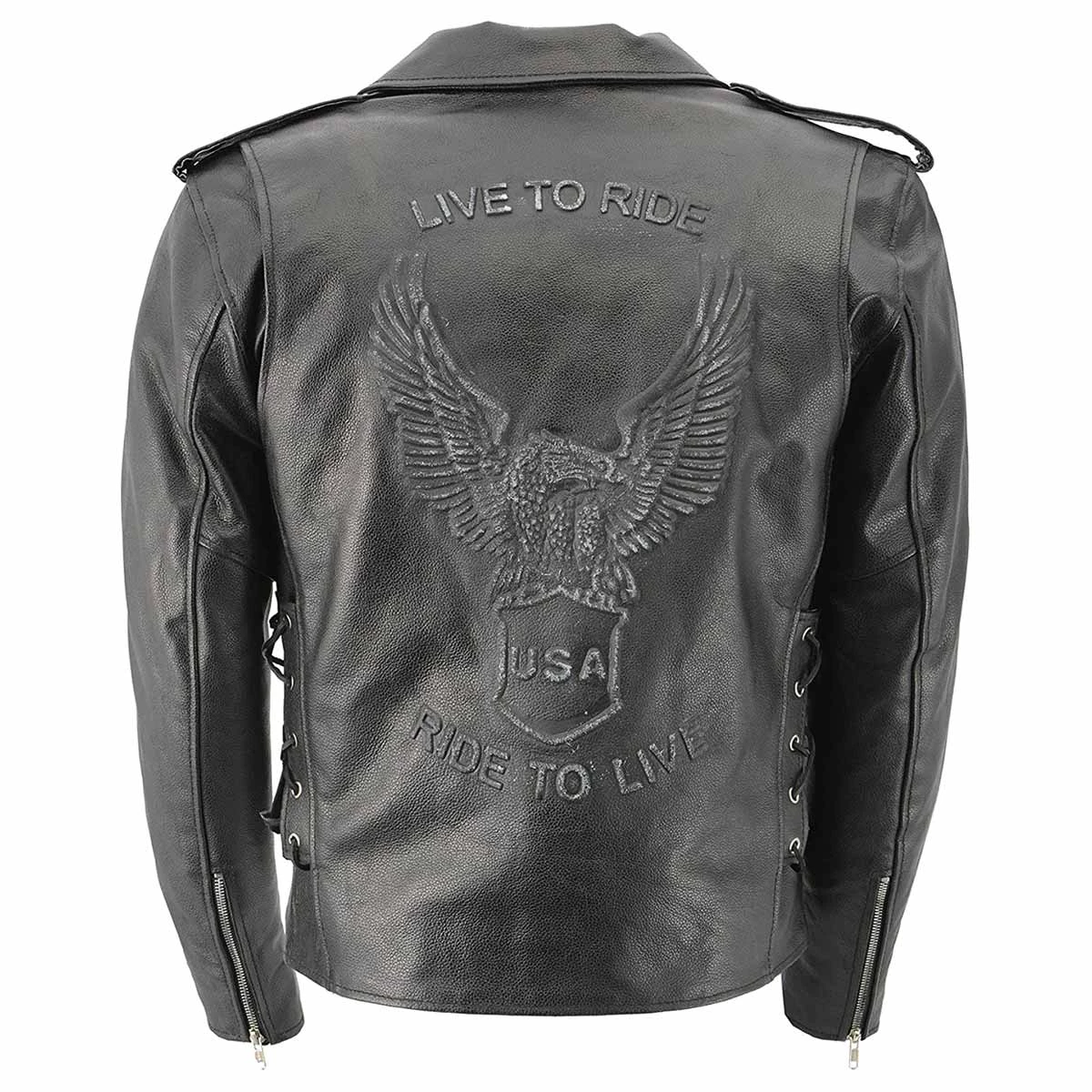 M-Boss Motorcycle Apparel BOS11512 Men’s ‘Classic Eagle Embossed’ M/C Biker Leather Jacket