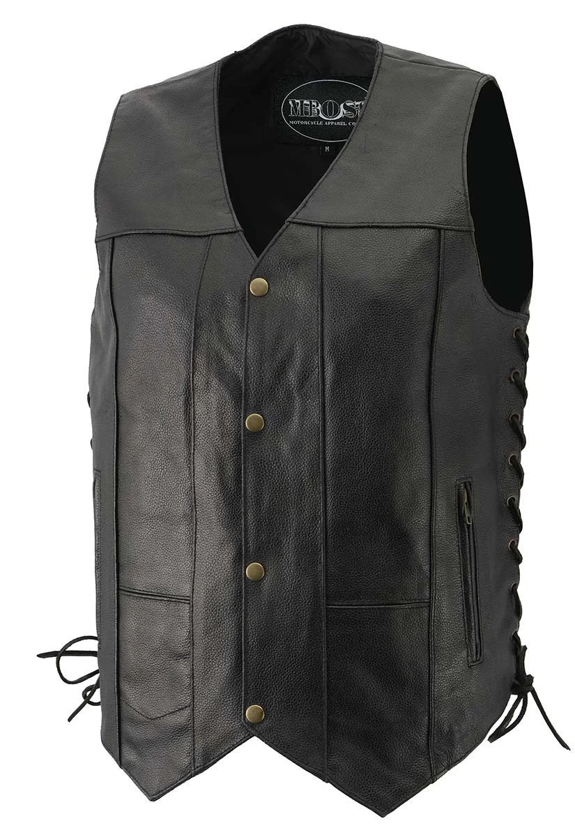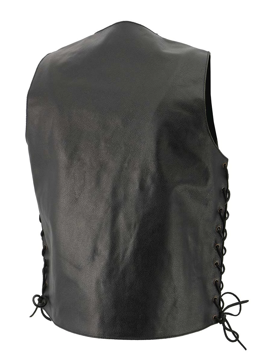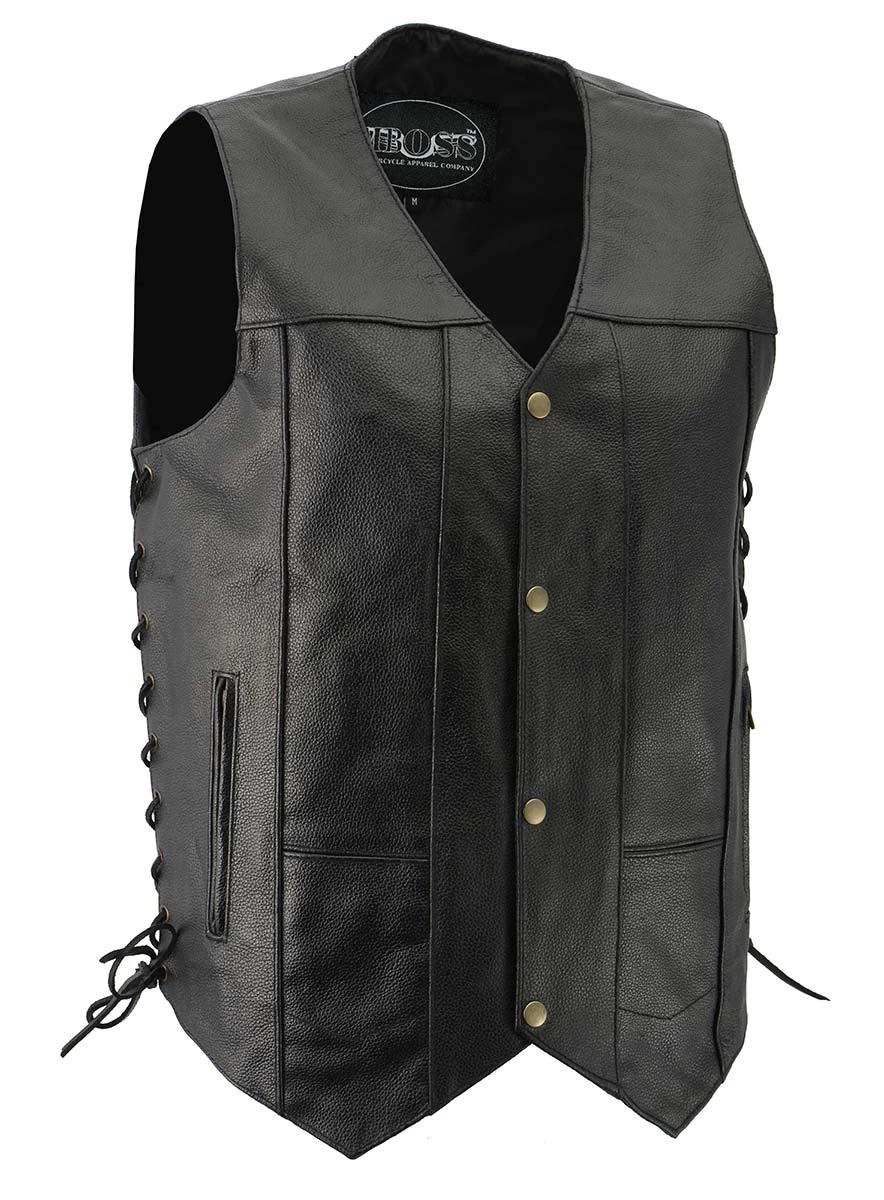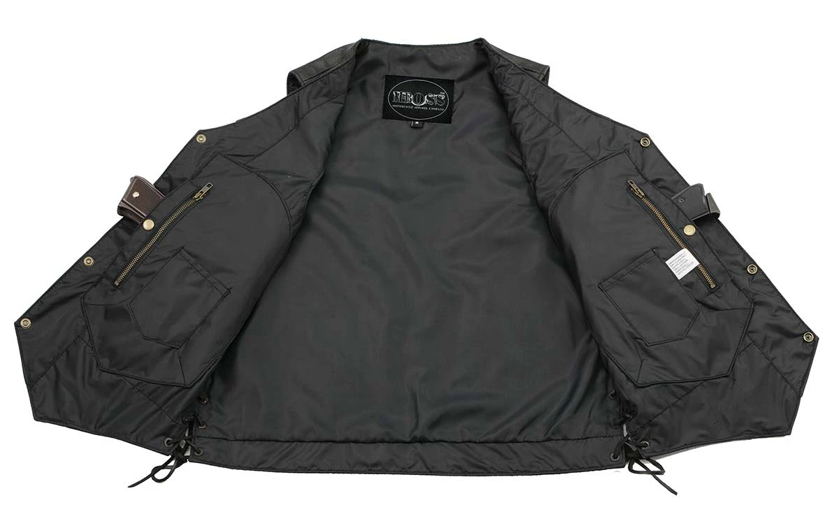 M-Boss Motorcycle Apparel BOS13517 Men’s Black ‘Side Laced’ Leather Vest with Gun Pockets