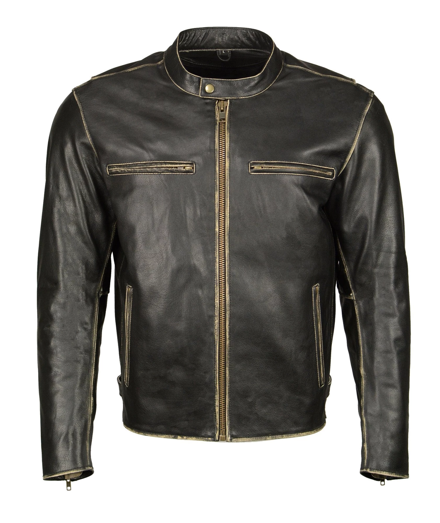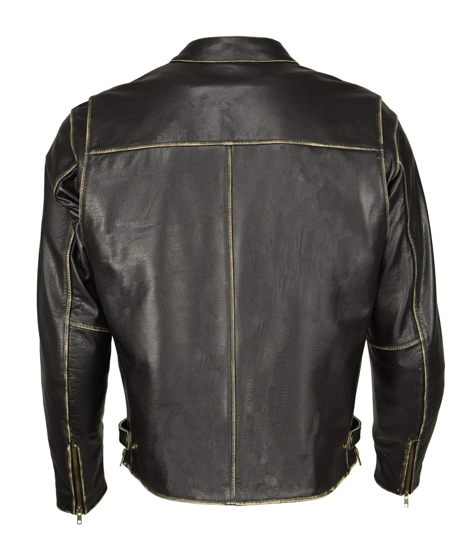 M Boss Apparel BOS11504 Mens Distressed Black Leather Moto Jacket with Snap Collar