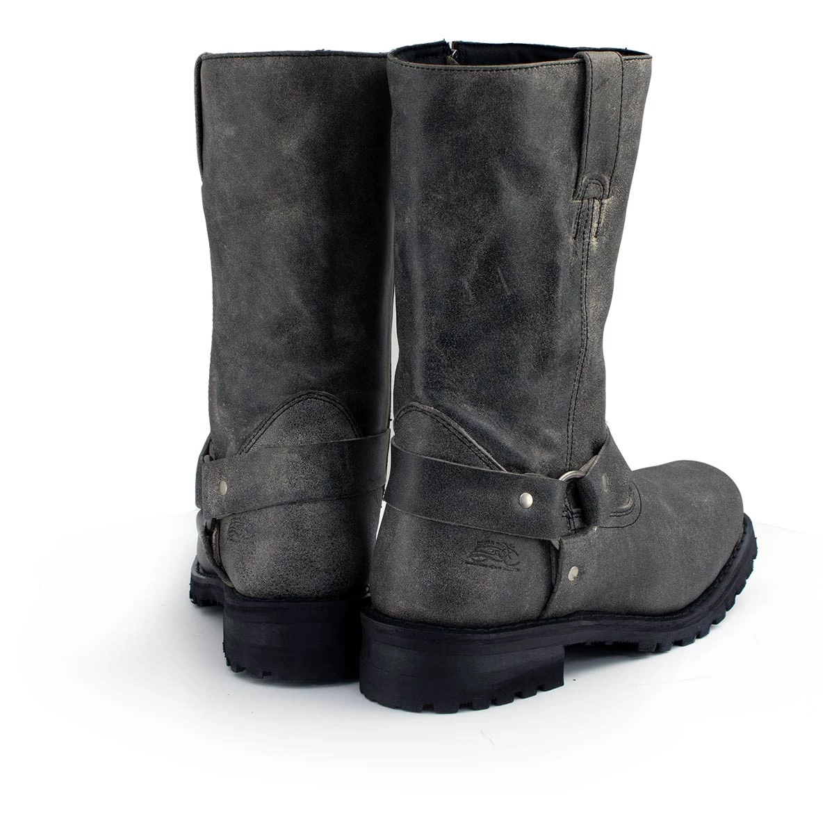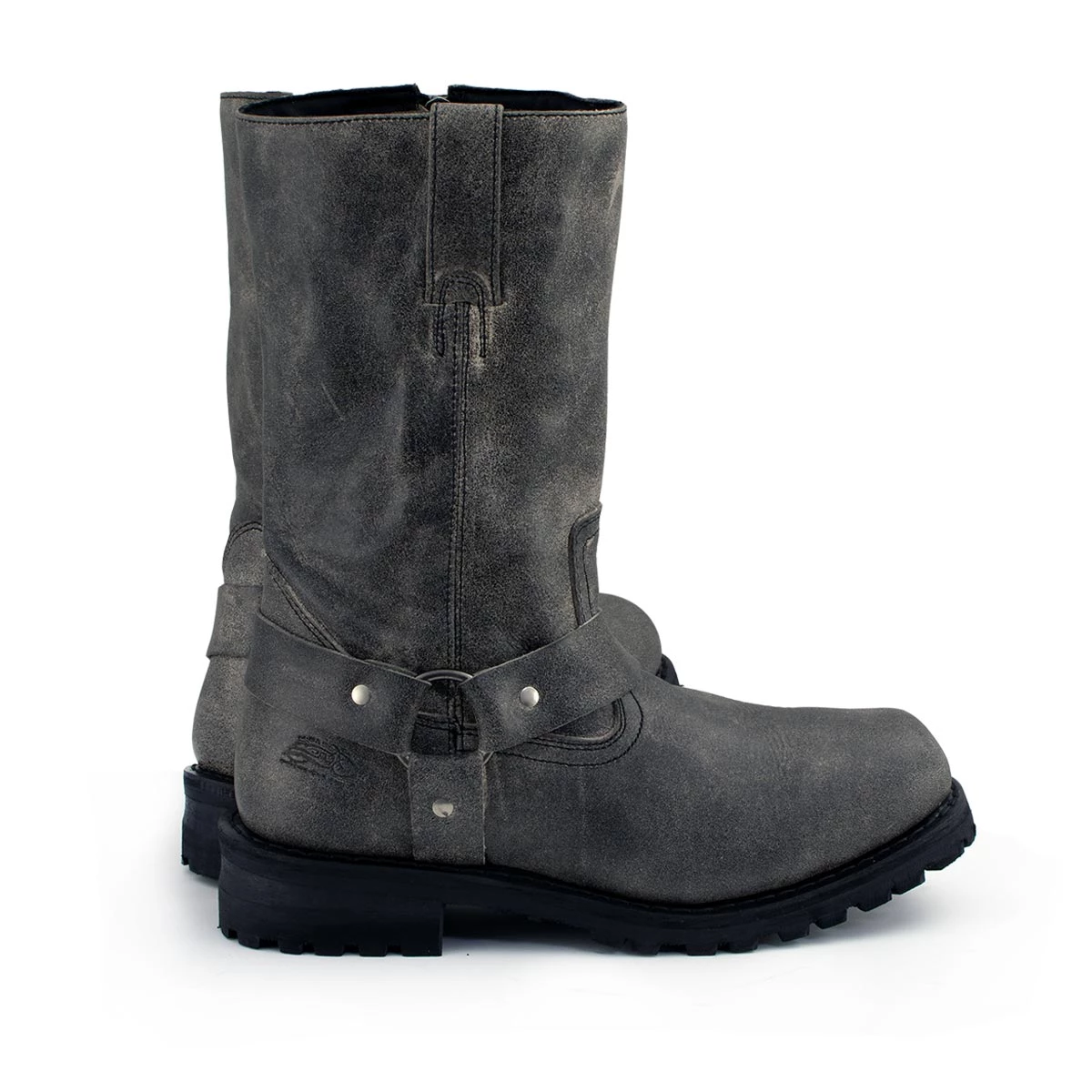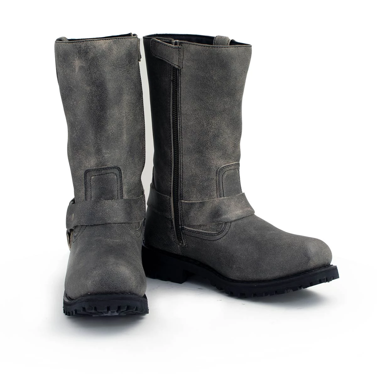 M-Boss Apparel BOS49001 Men’s Classic 12-inch Distress Grey Harness Leather Motorcycle Boots