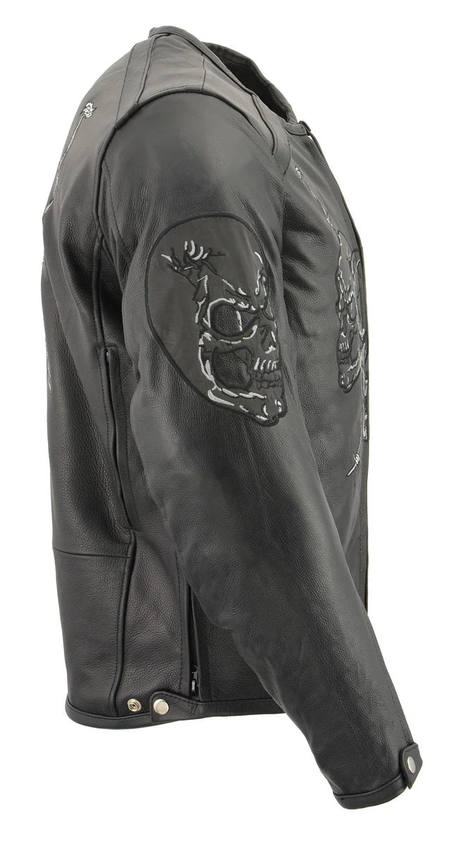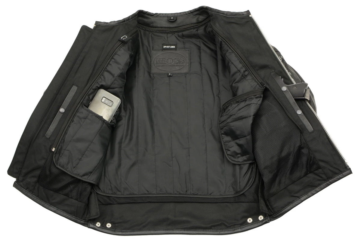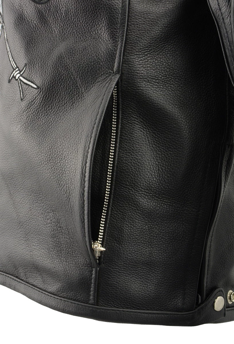 Leather Motorcycle Jackets Vulcan VNE98431 Men’s ‘Ace’ Black Leather Armored Motorcycle Jacket