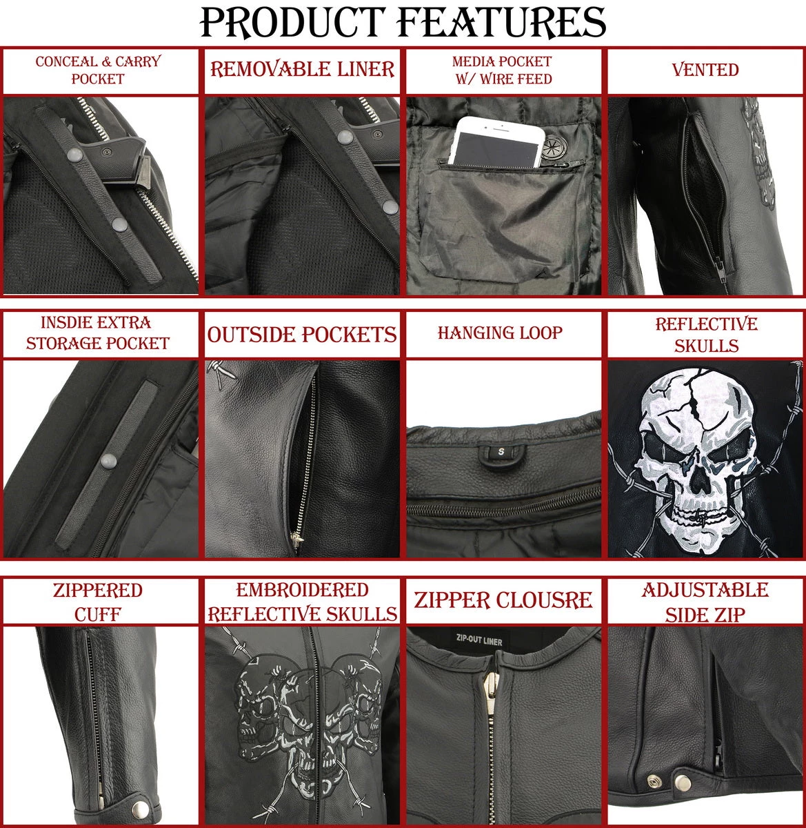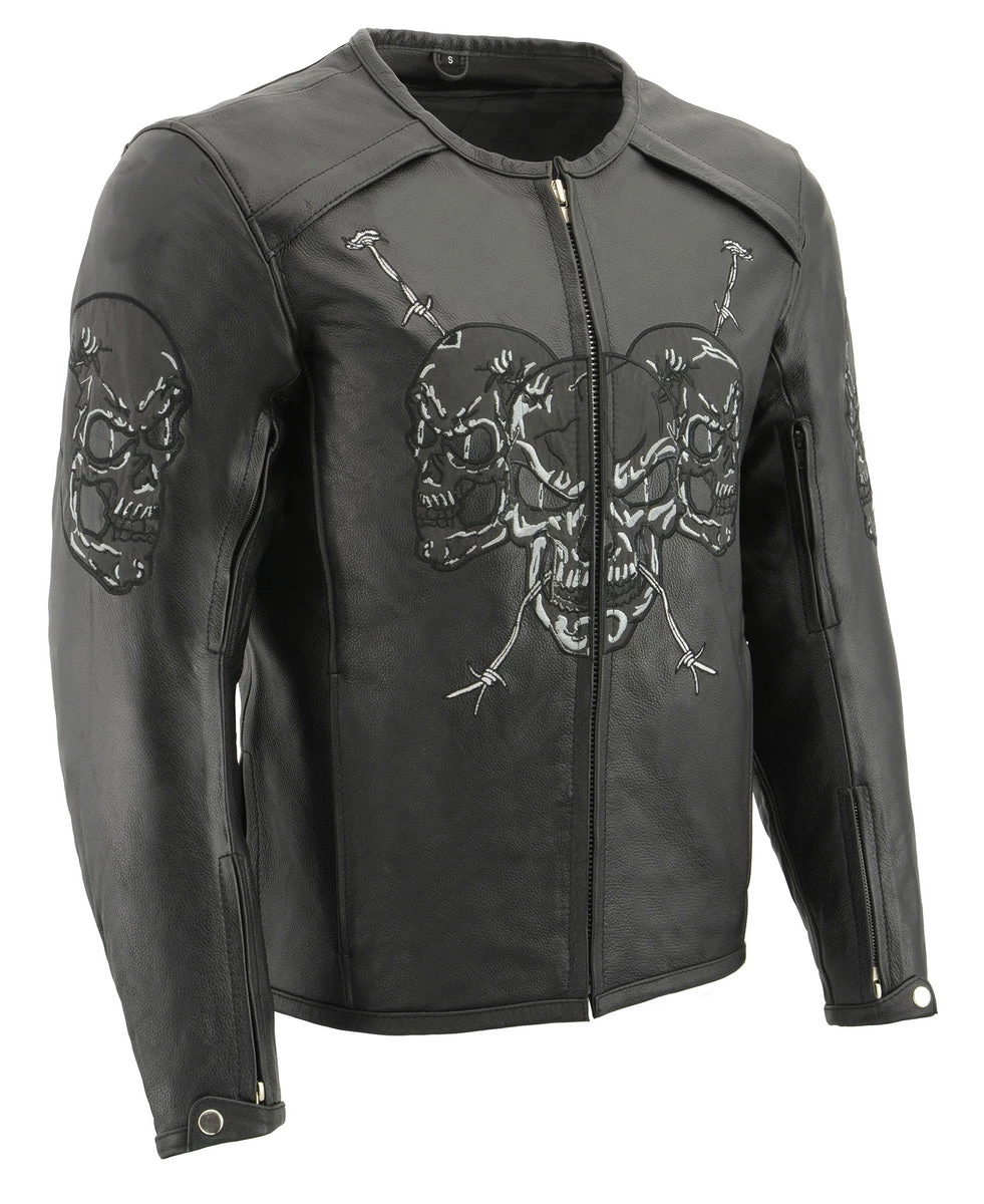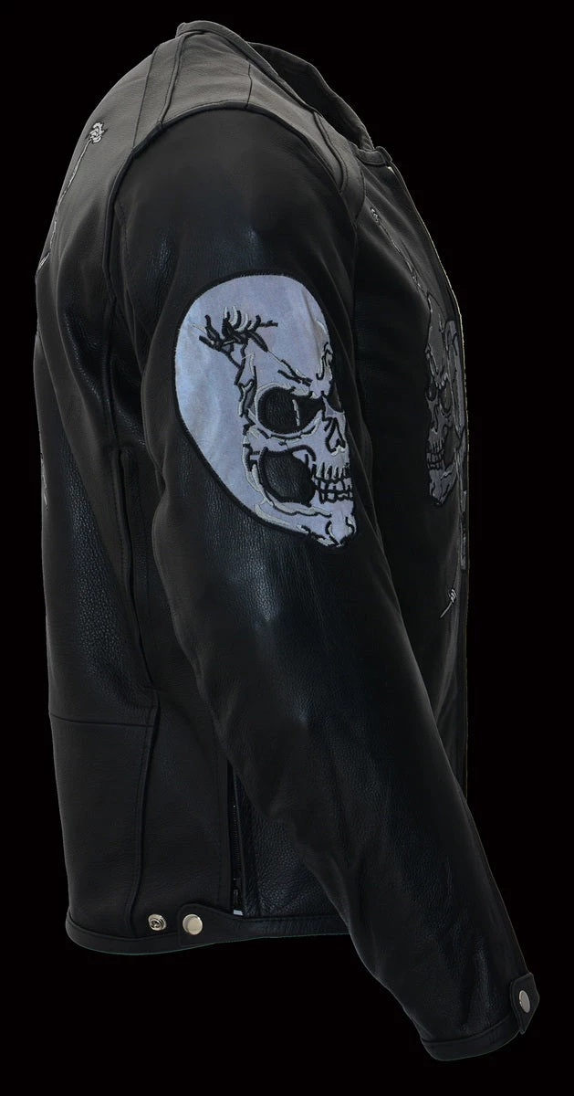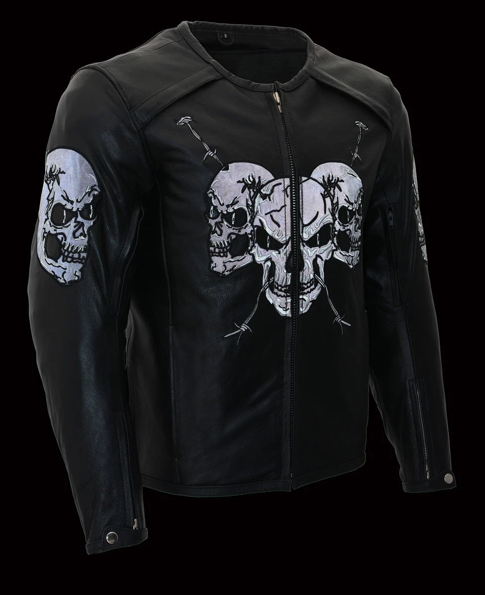 Milwaukee Leather MG7571 Men’s Black ‘Cool-Tec’ Leather ‘Reflective Skull’ Riding Gloves