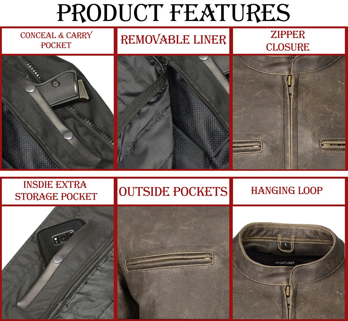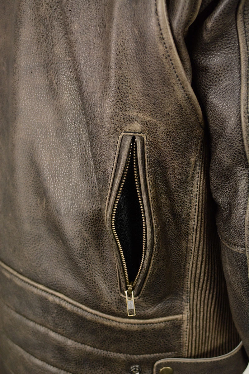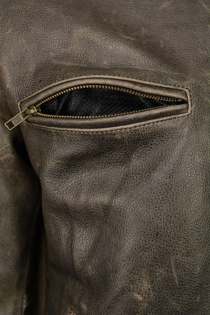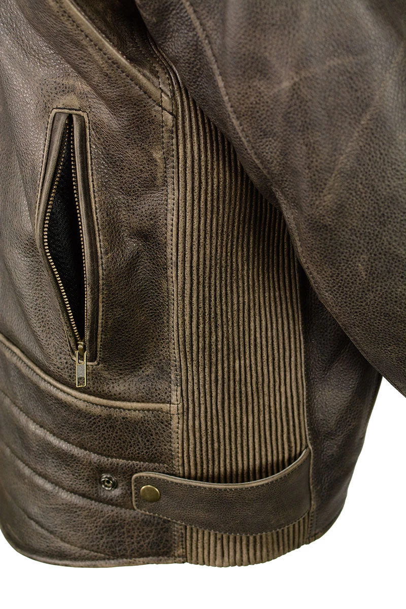 M-Boss BOS11503 Men’s Distress Brown Armored Leather Scooter Jacket with Armor