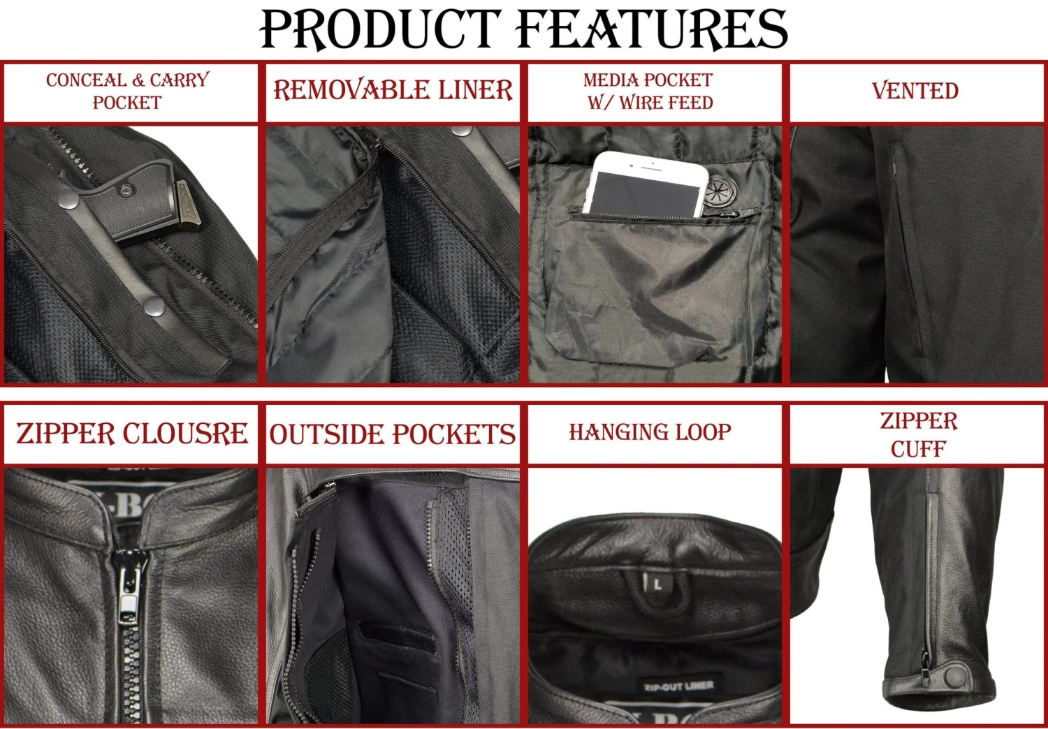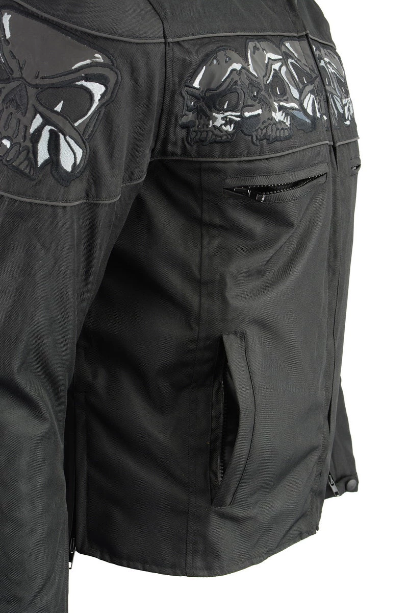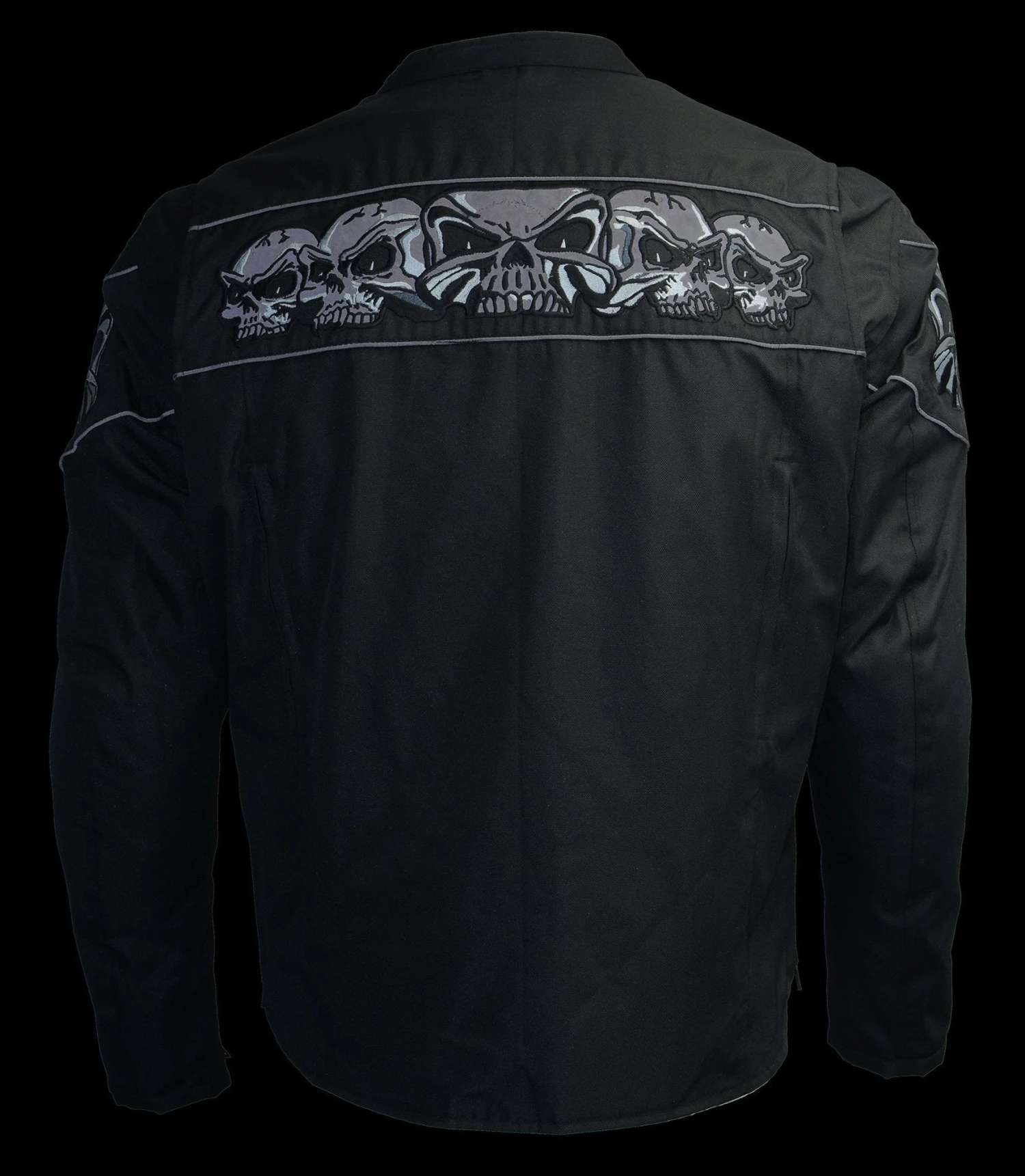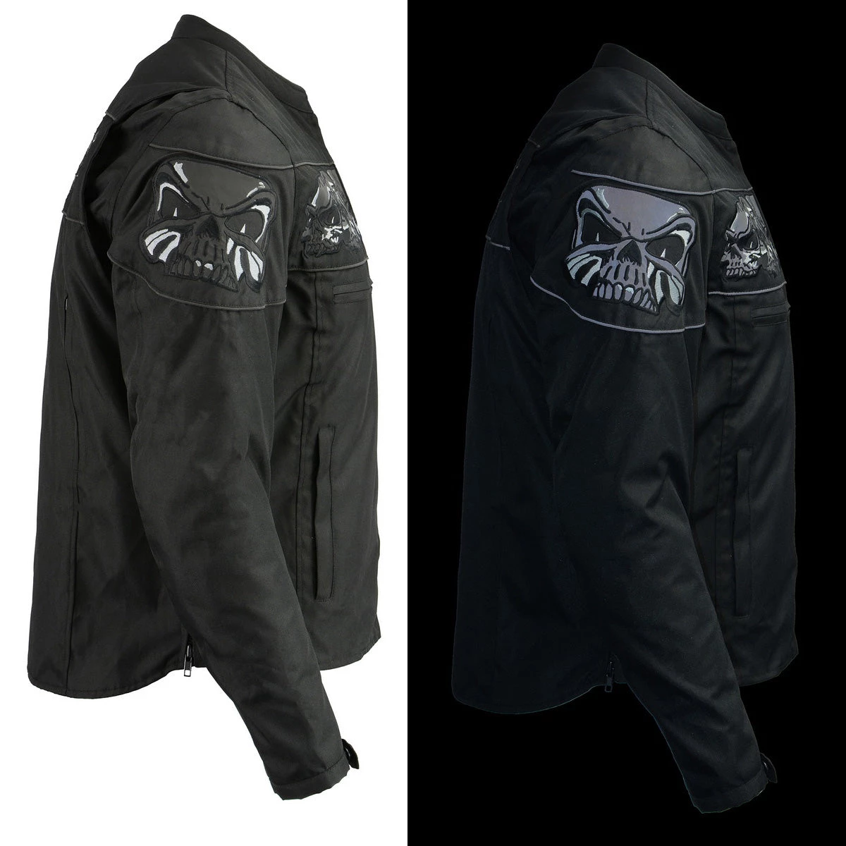 M Boss Apparel BOS11704 Mens Black Textile Jacket with Reflective Skulls