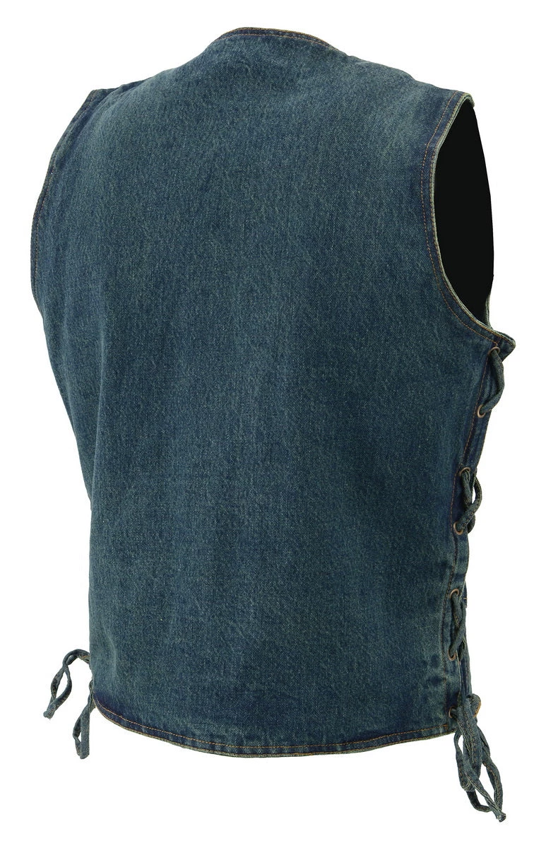 M Boss Motorcycle Apparel BOS13003 Mens Blue Denim Snap Front Side Lace Vest