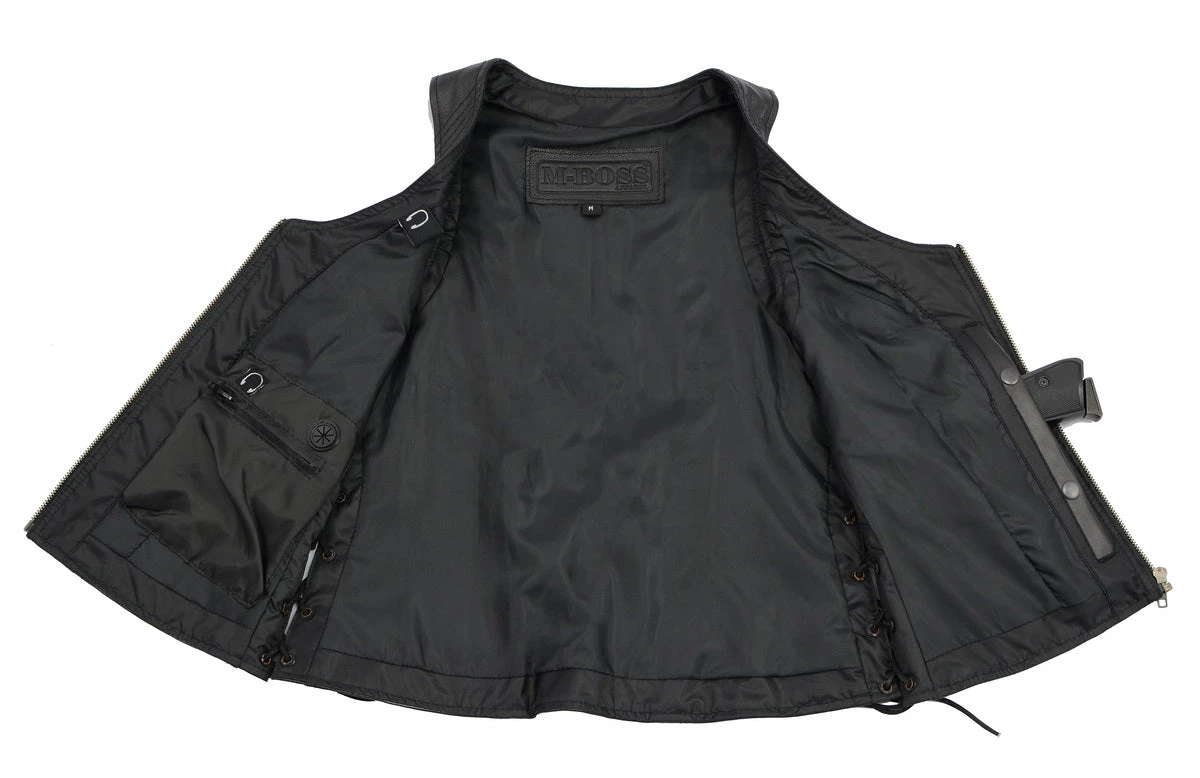 M Boss Apparel BOS24503 Ladies Black Leather Side Lace Zipper Front Vest