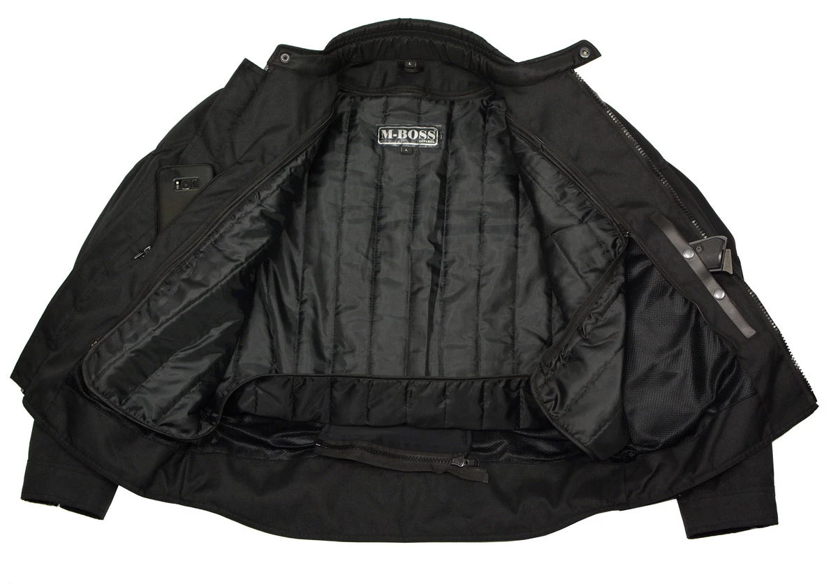 M Boss Motorcycle Apparel BOS11700 Black Mens Nylon Racer Jacket with Reflective Piping