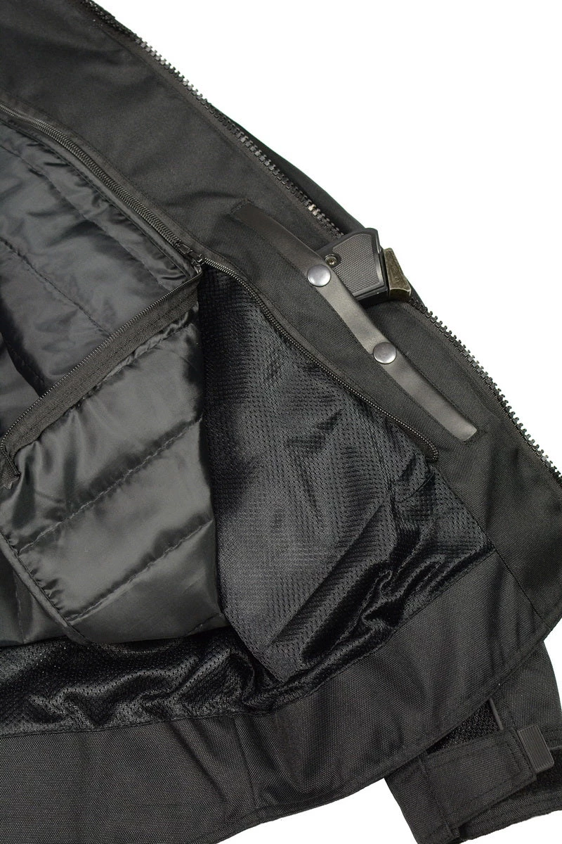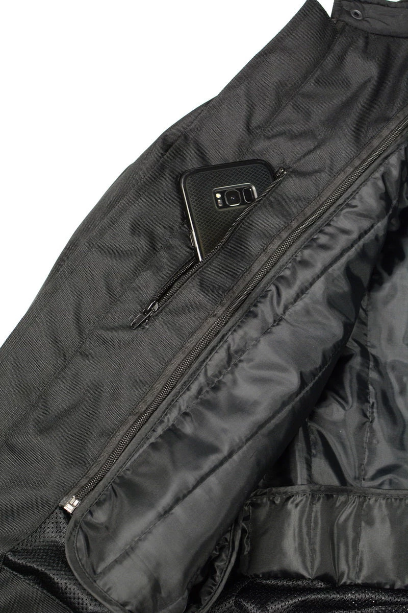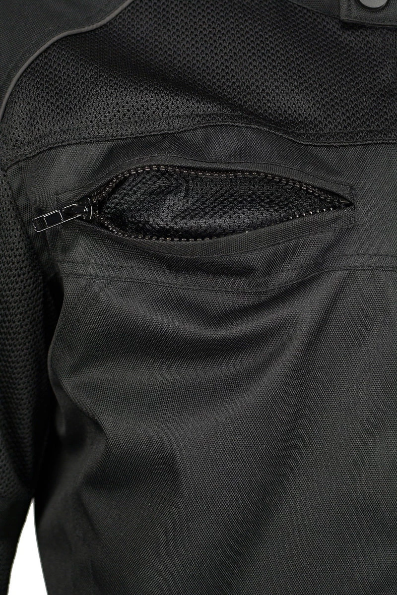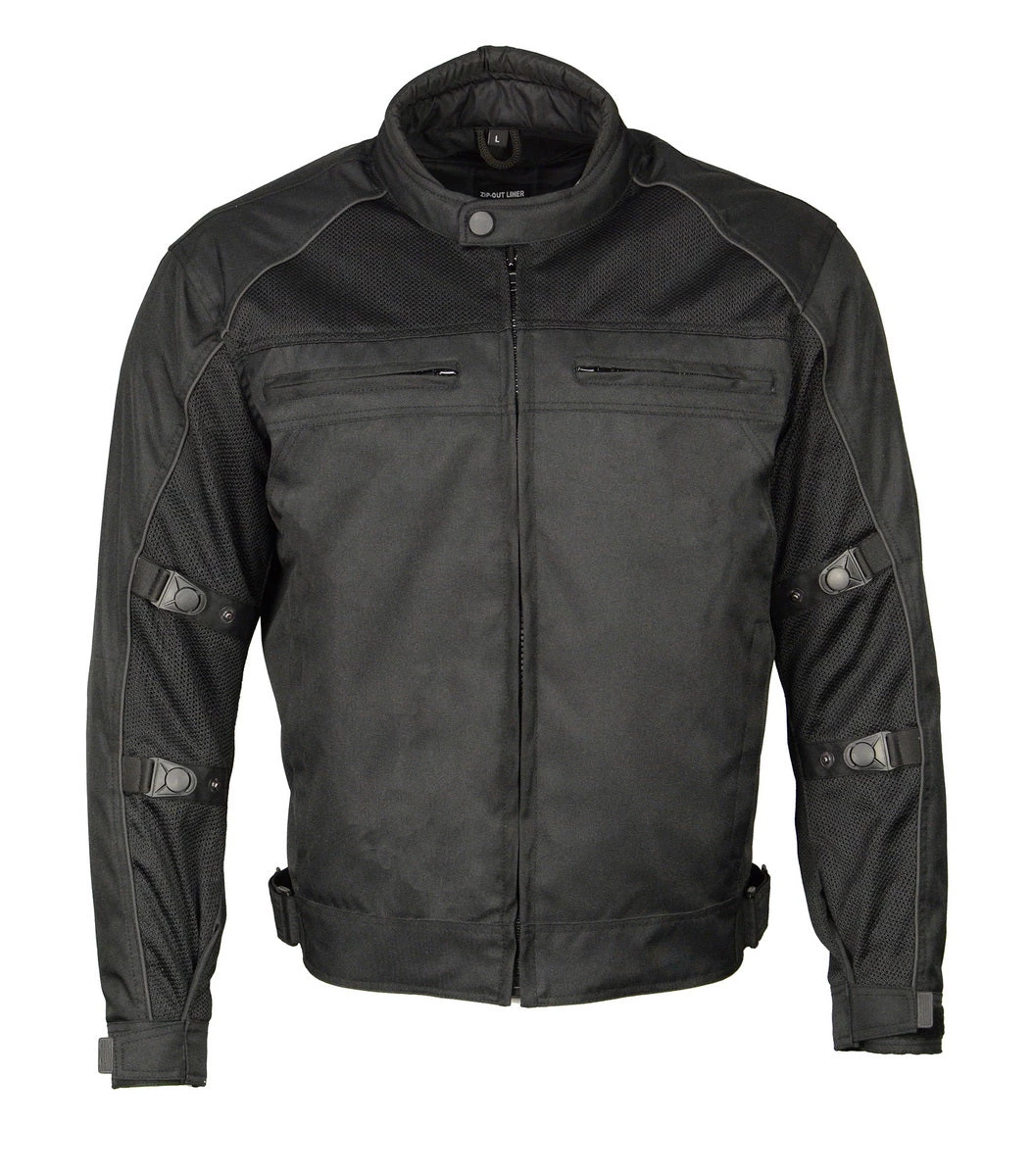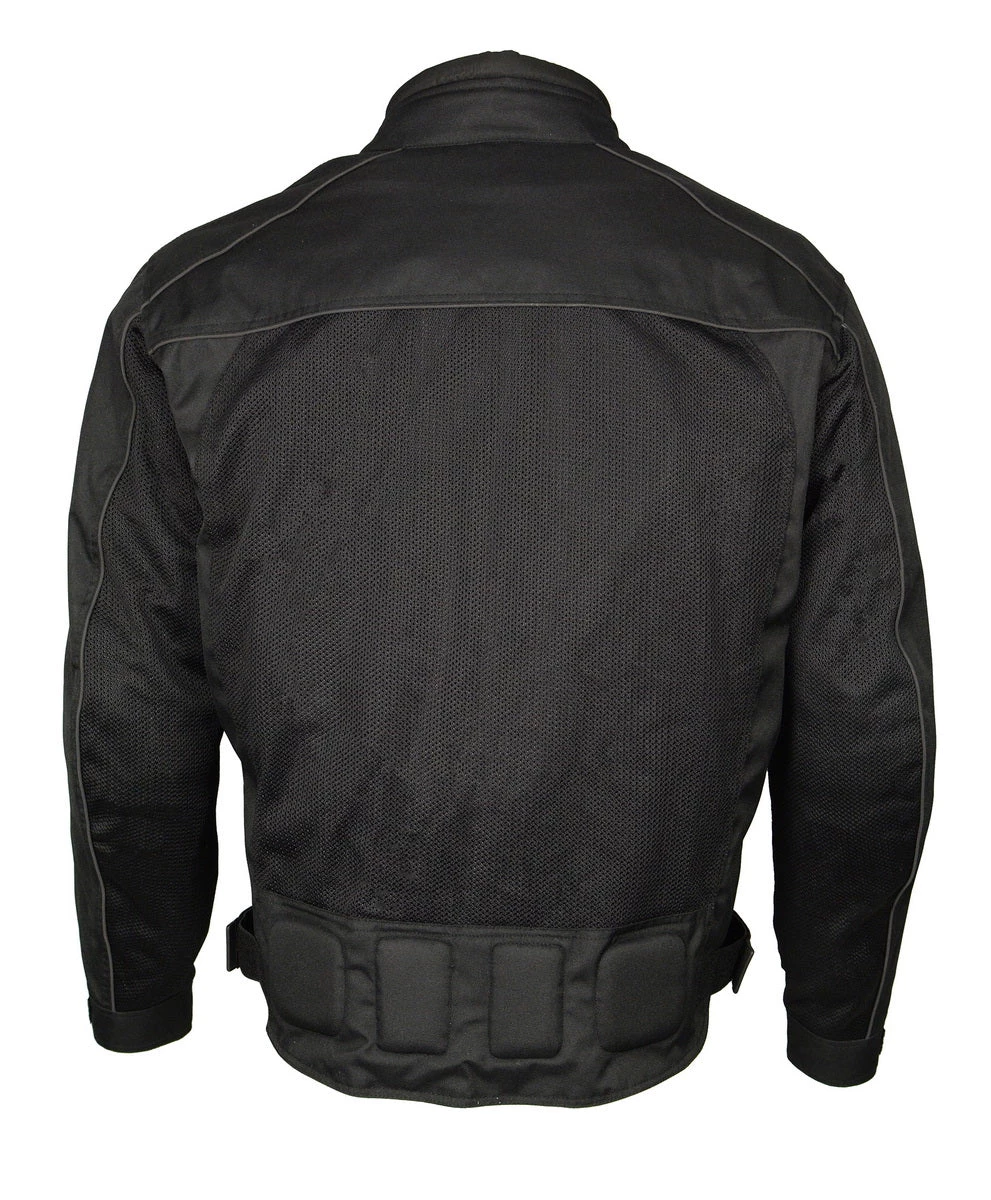 M Boss Motorcycle Apparel BOS11703 Black Mens Black Nylon and Mesh Racer Jacket with Reflective Piping