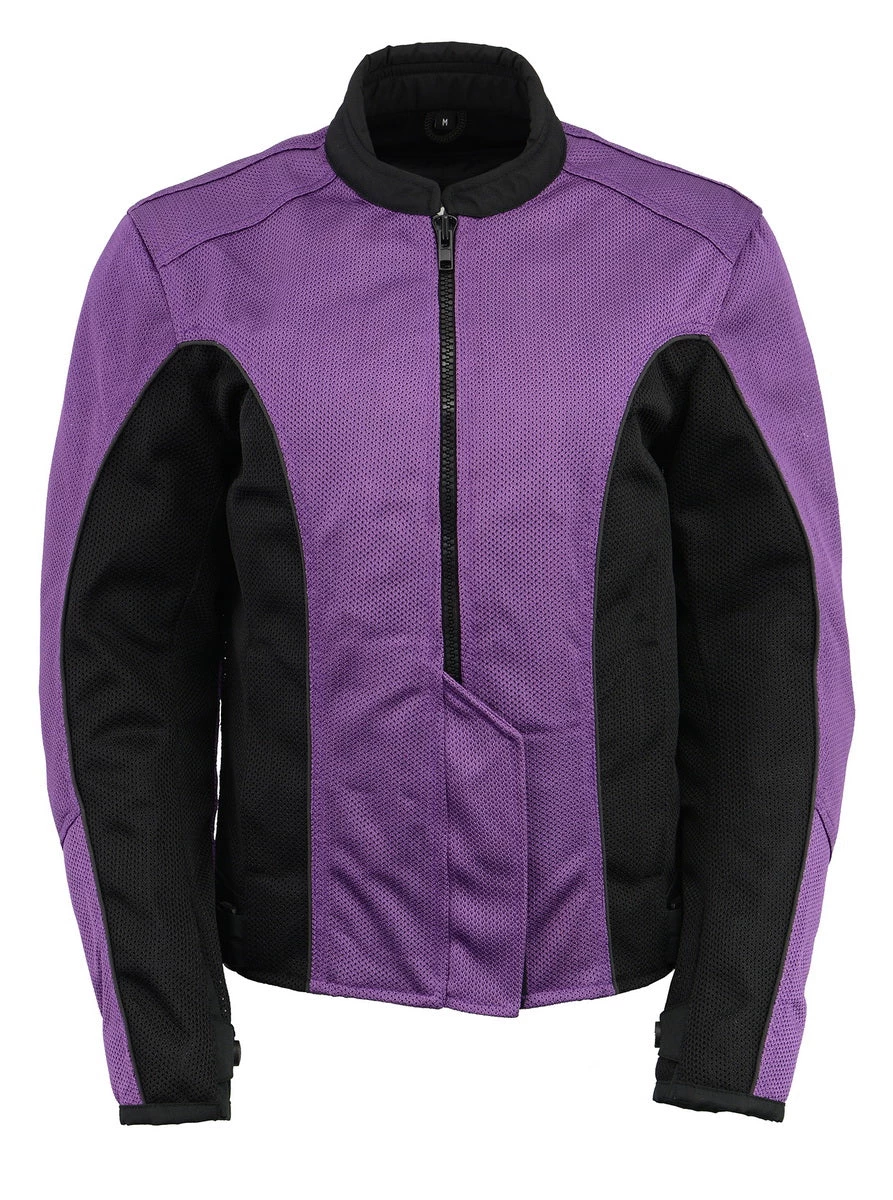 b>M Boss Apparel BOS22702 Ladies Black and Purple Mesh Racer Jacket with Full Armor