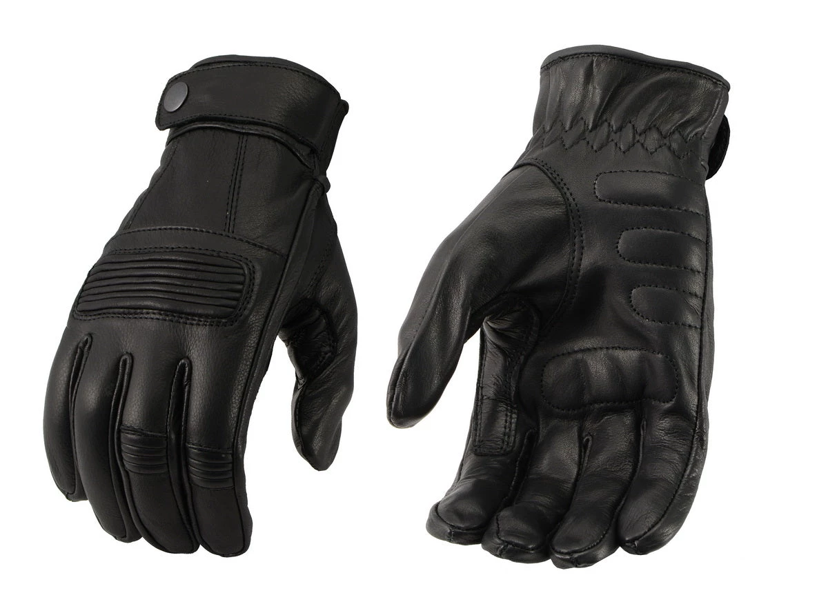 M Boss Motorcycle Apparel BOS37538 Men’s ‘Flex Knuckles’ Black Premium Leather Riding Gloves with Gel Palm