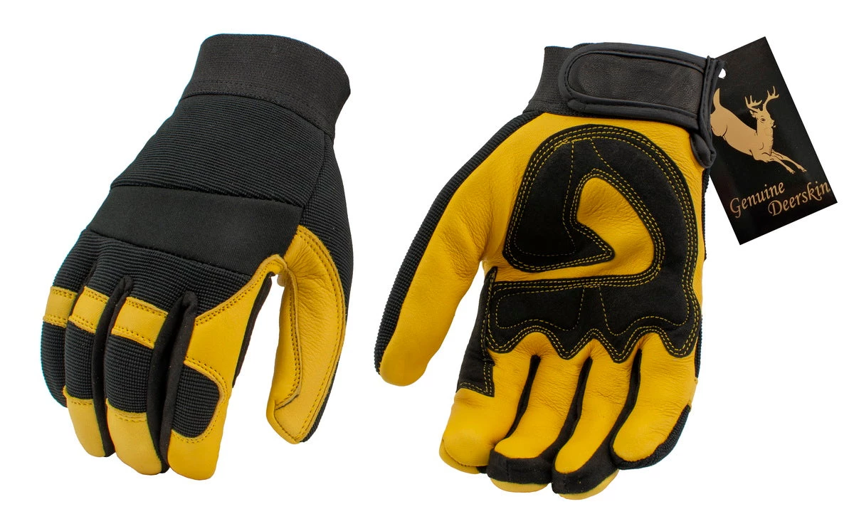 M Boss Apparel BOS37548 Men’s Yellow and Black Lined Full Grain Deerskin Gloves