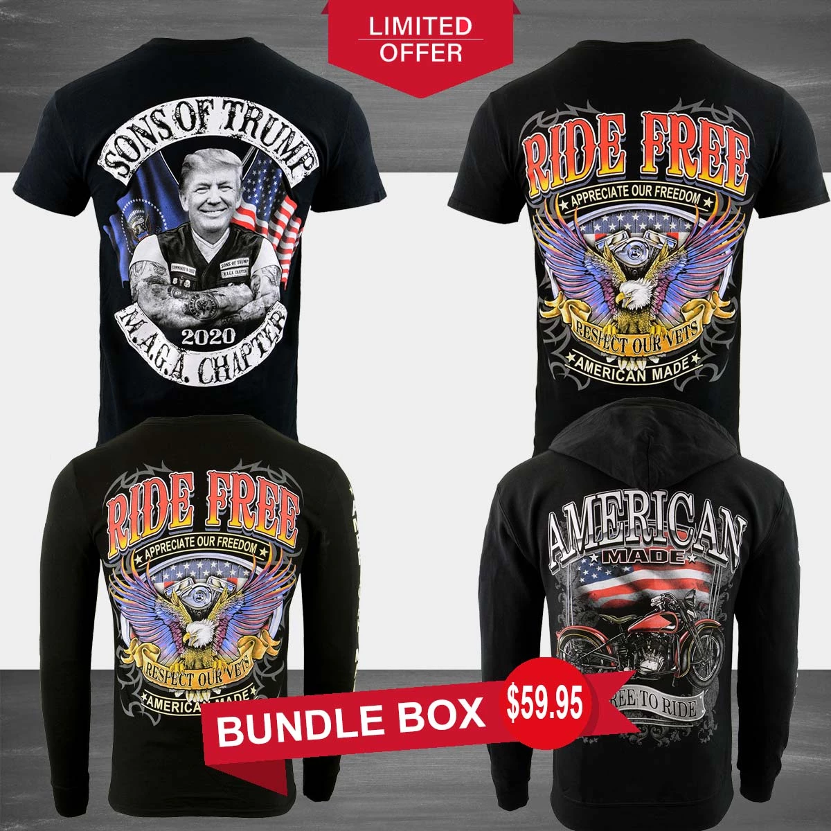 Men’s Box-4 Biker Clothing Co. Short Sleeve, Long Sleeve and Hoodie Bundle Box