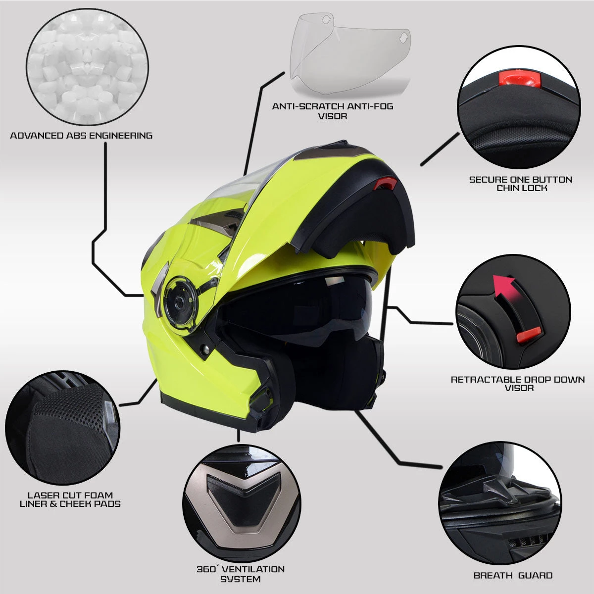 Milwaukee Helmets MPH9809DOT ‘Ionized’ Neon Yellow Modular Helmet with MP7922FMSET Heated Balaclava Bundle