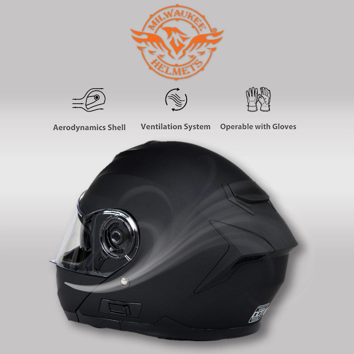 Milwaukee Helmets MPH9814DOT ‘Breeze’ Flat Black Advanced Motorcycle Modular Helmet with Drop Down Visor