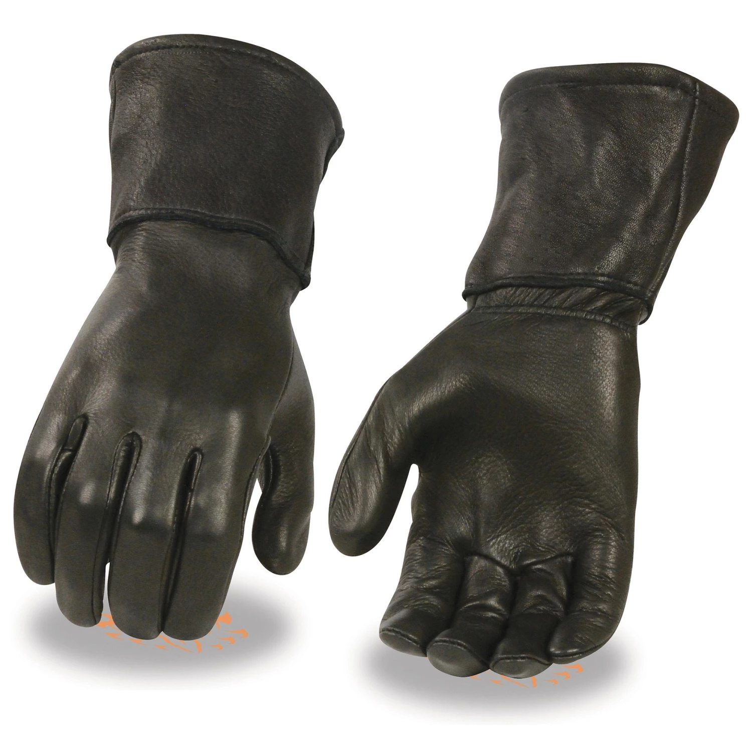 Milwaukee Leather G317 Menâs Black Deerskin Leather Thermal Lined Gauntlet Gloves