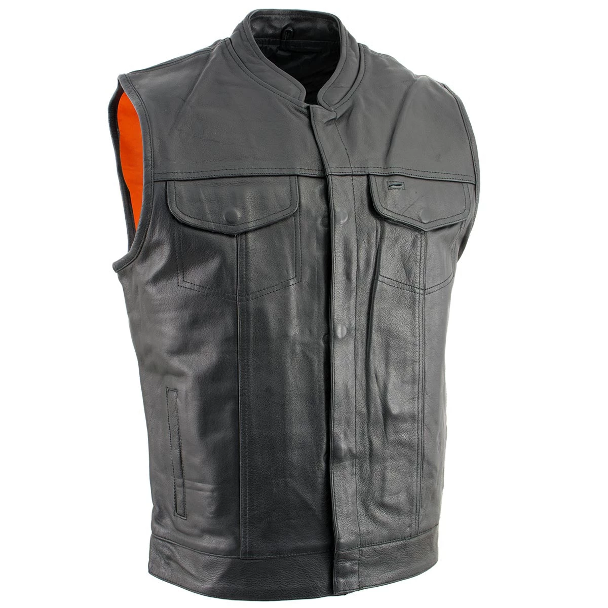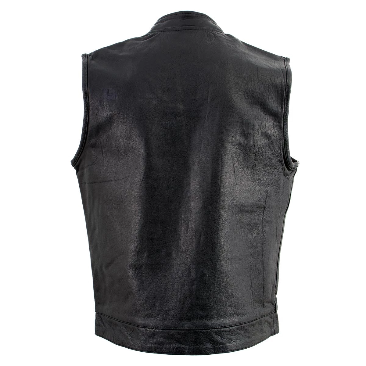 Leather King SH203601 Men’s Black ‘Club’ Open Neck Leather Vest