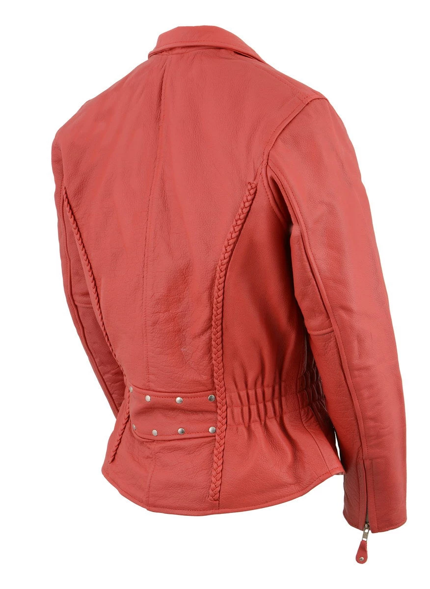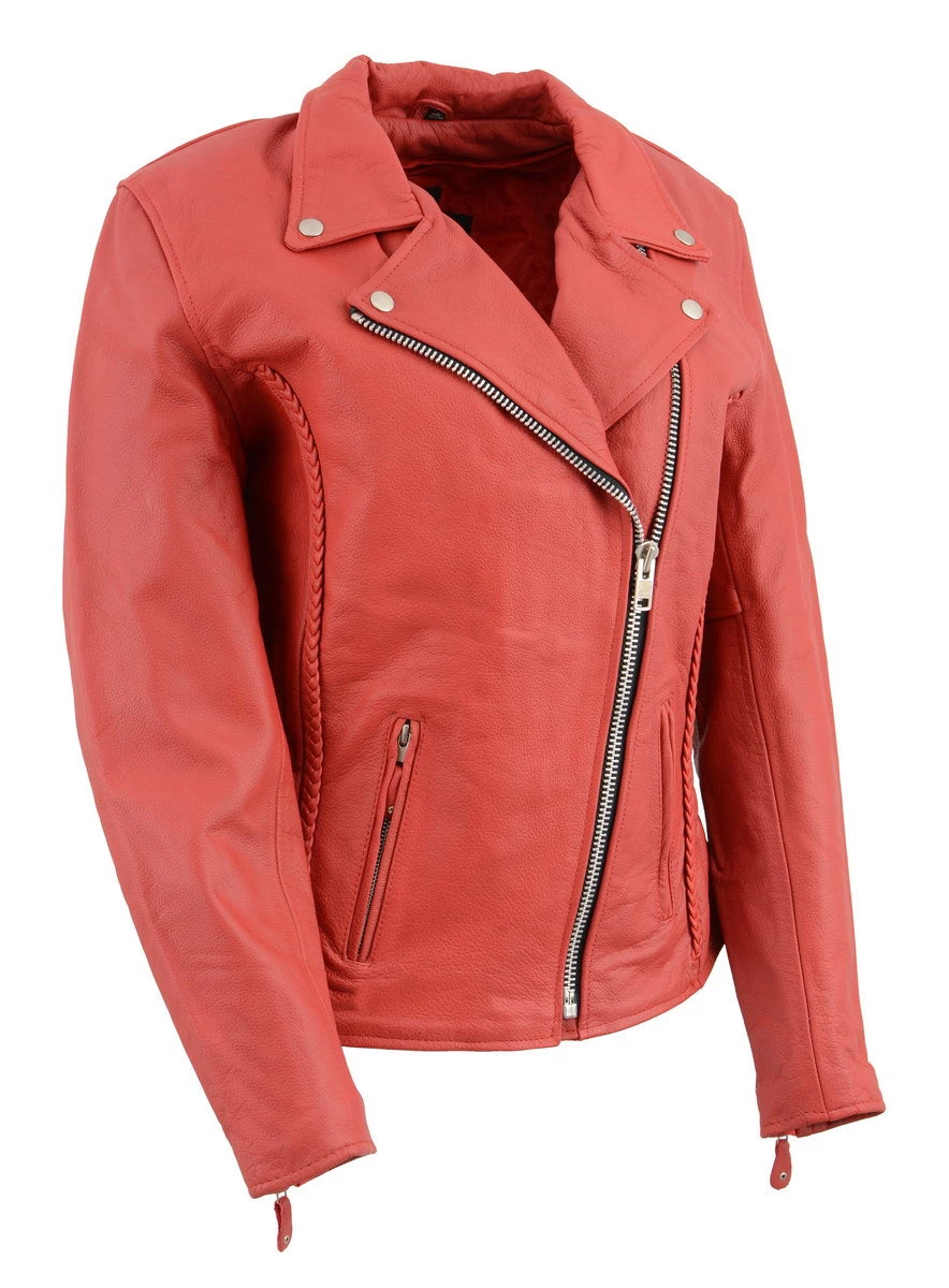 Leather King SH7013 Ladies ‘Braided’ Red Leather Jacket