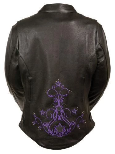 Milwaukee Leather MLL2500 Women’s Reflective Star Riveted Black and Purple Leather Jacket with Gun Pockets
