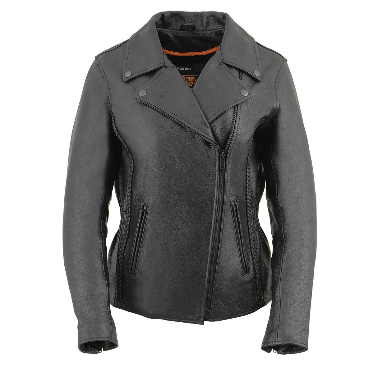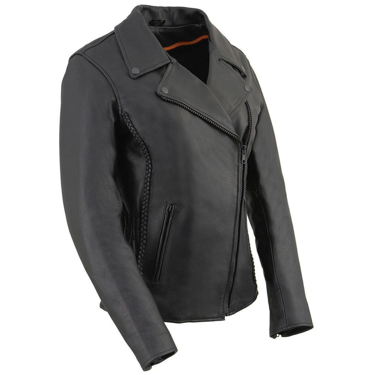 Milwaukee Leather LKL2711 Women’s Black Braided Leather Jacket with Stud Back Detailing