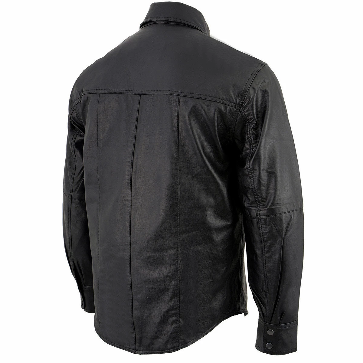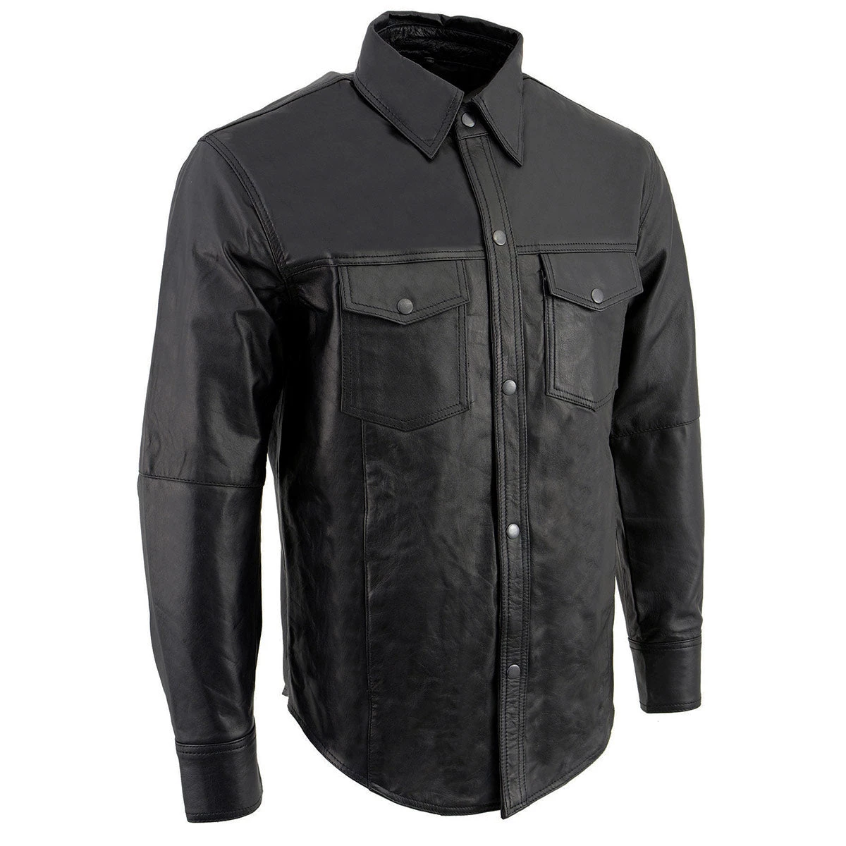 Milwaukee Leather LKM1600 Men’s Lightweight Snap Down Black Leather Shirt with Inside Gun Pocket