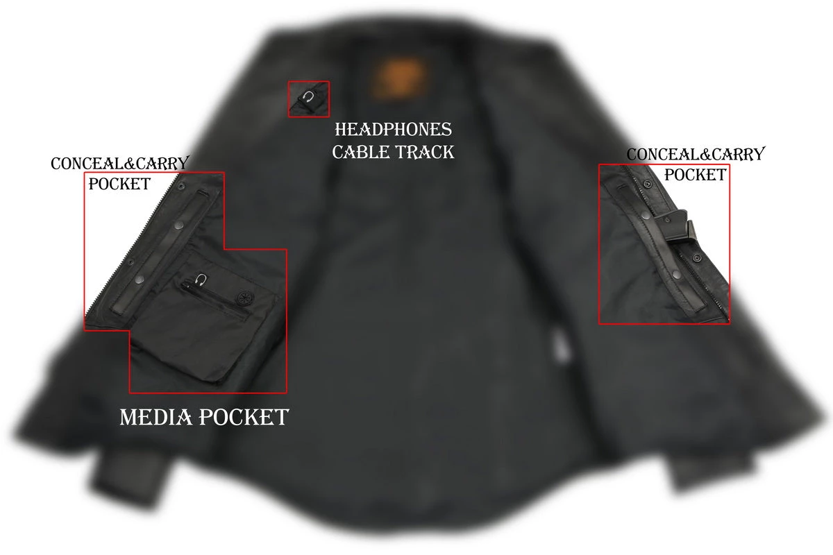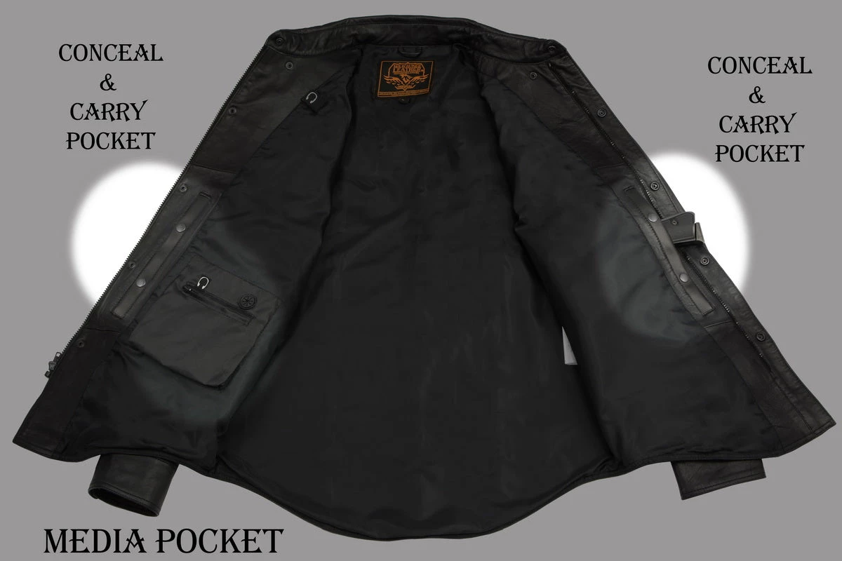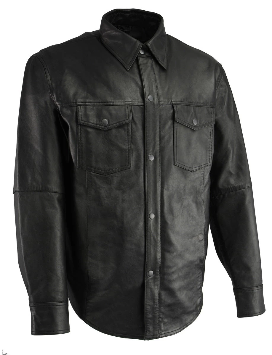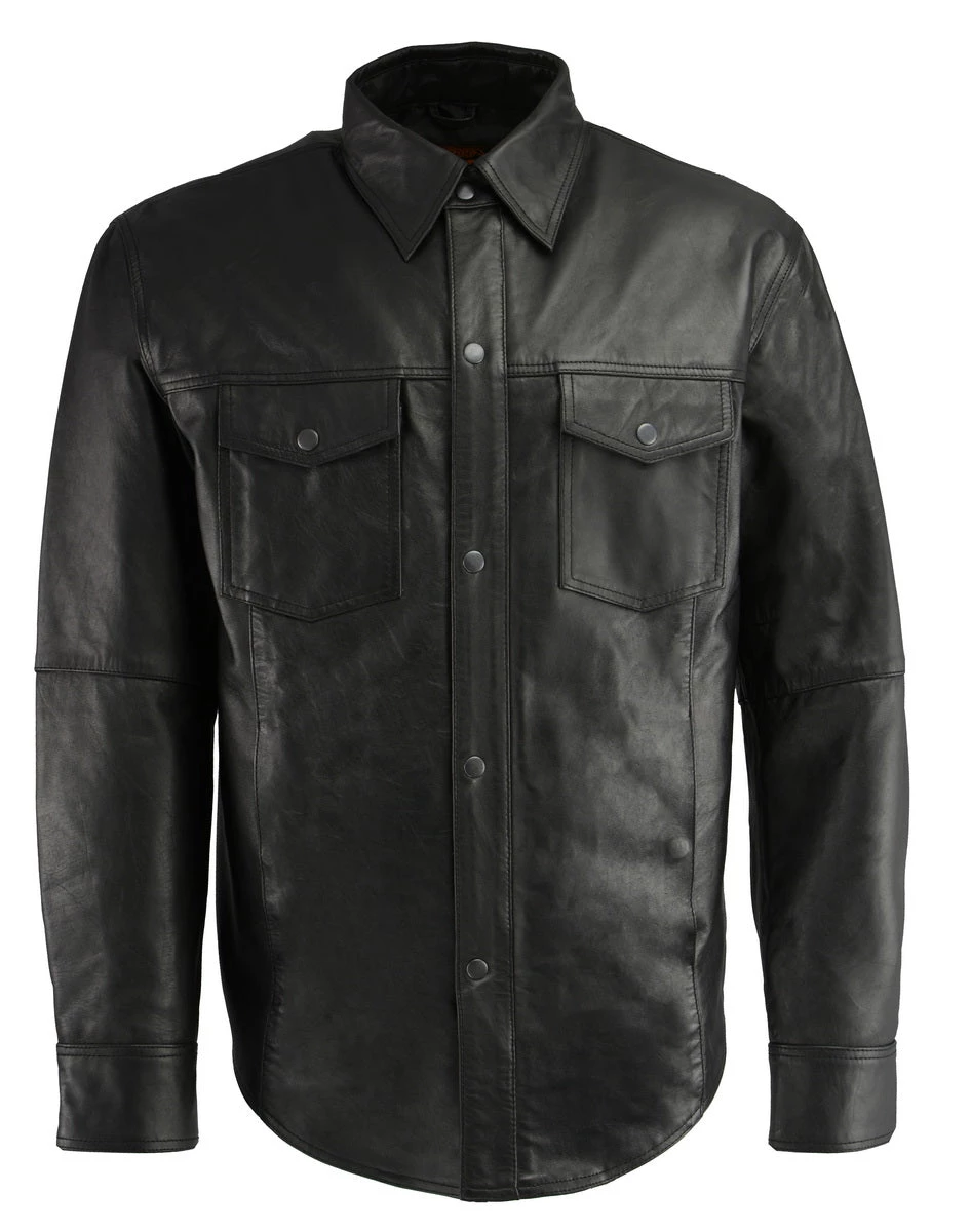 Milwaukee Leather LKM1601 Men’s Black Lightweight Leather Shirt with Gun Pockets
