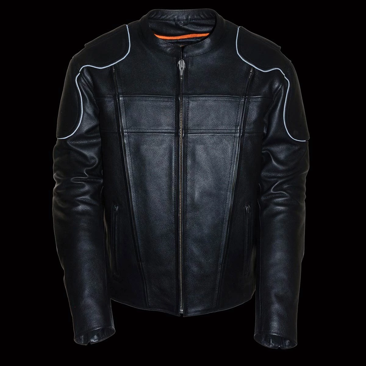 Milwaukee Leather LKM1705 Men’s Side Stretch Vented Black Leather Scooter Jacket