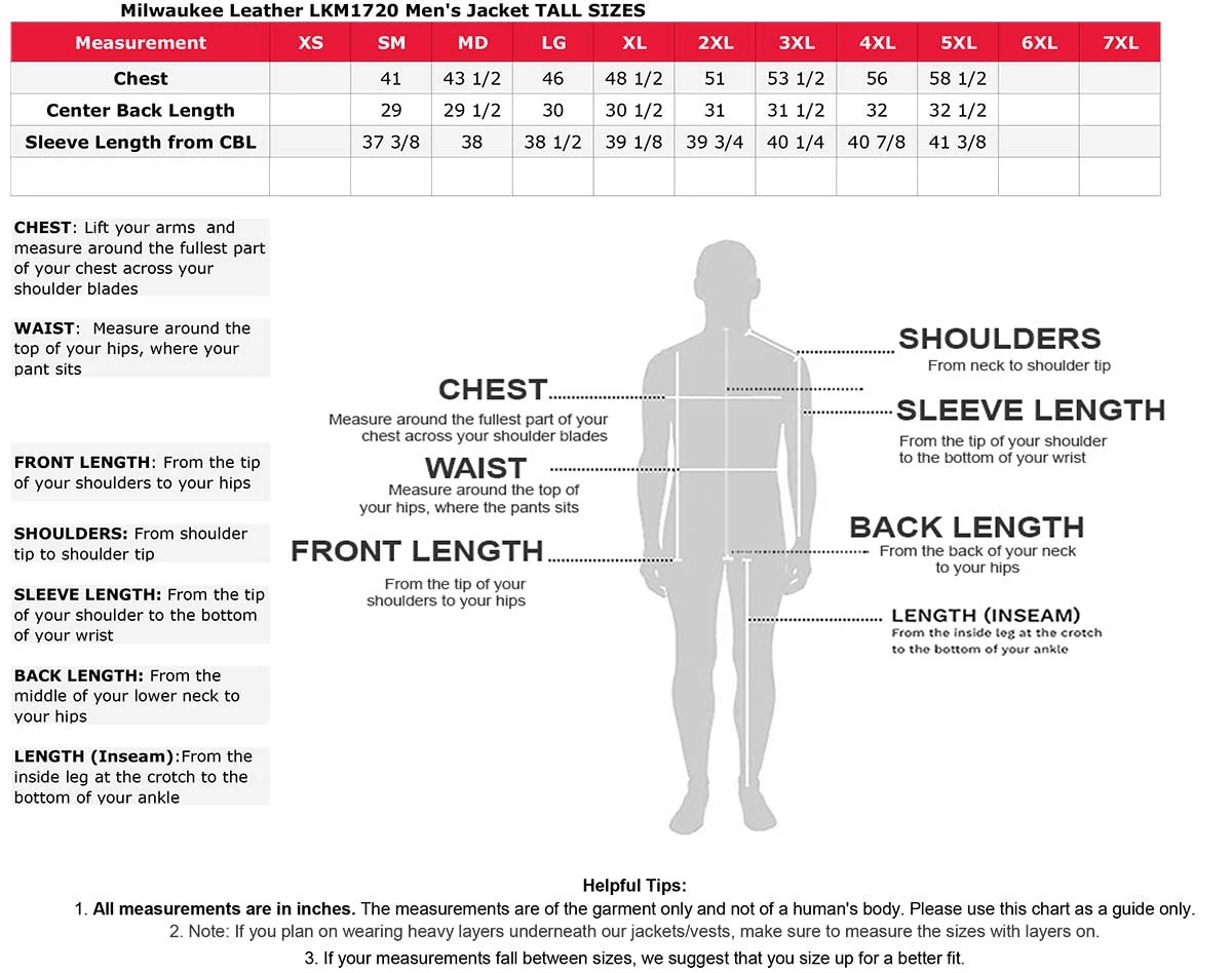Milwaukee Leather Mens LKM1720 Utility Pocket Vented Leather Cruiser Jacket with Gun Pocket