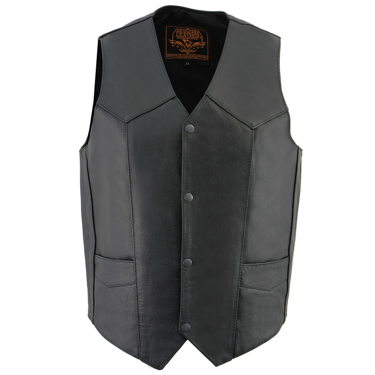 Milwaukee Leather LKM3730 Men’s Black Leather Classic Snap Front Vest