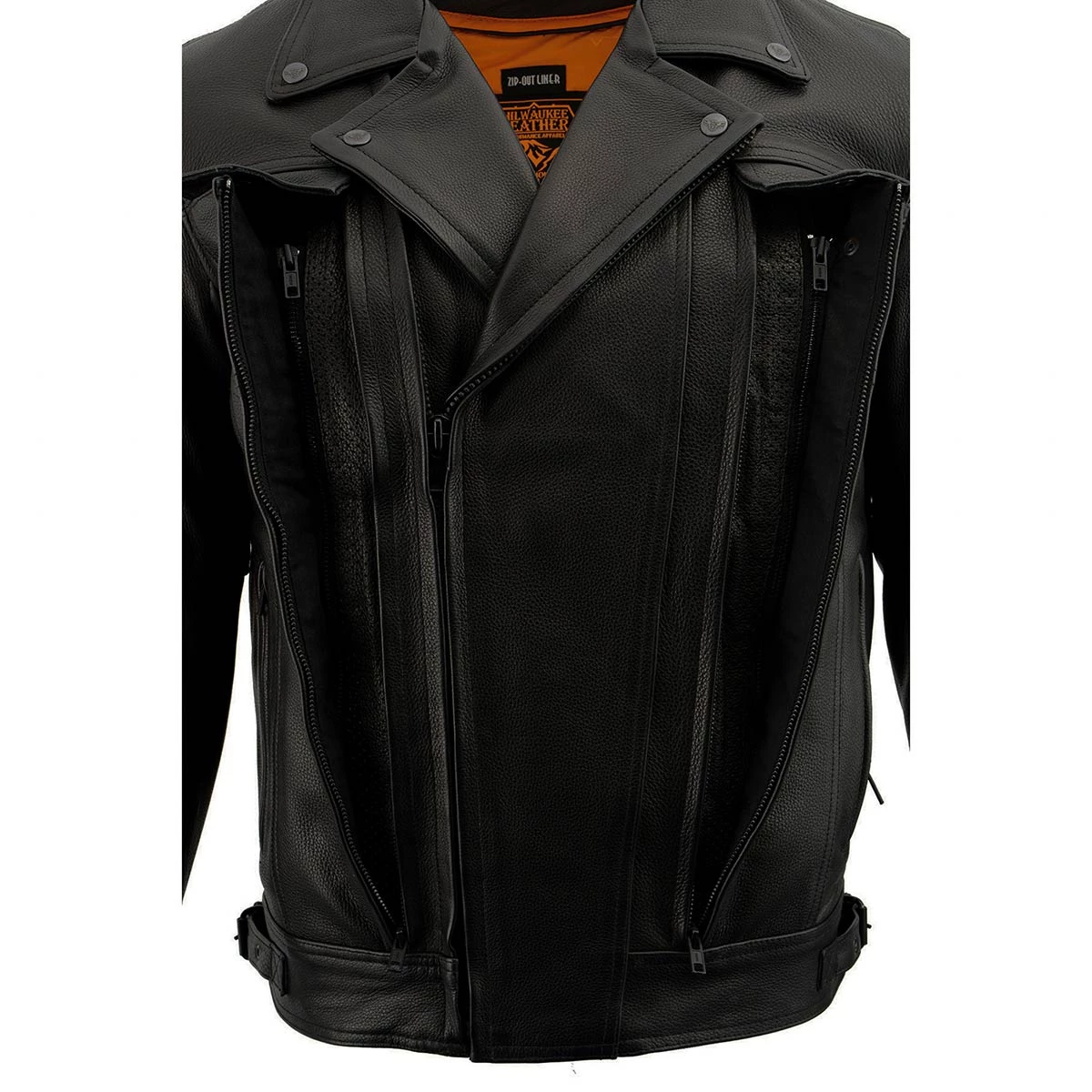 Milwaukee Leather LU1720 Men’s ‘Outlet’ Black Vented Leather Jacket with Utility Pockets