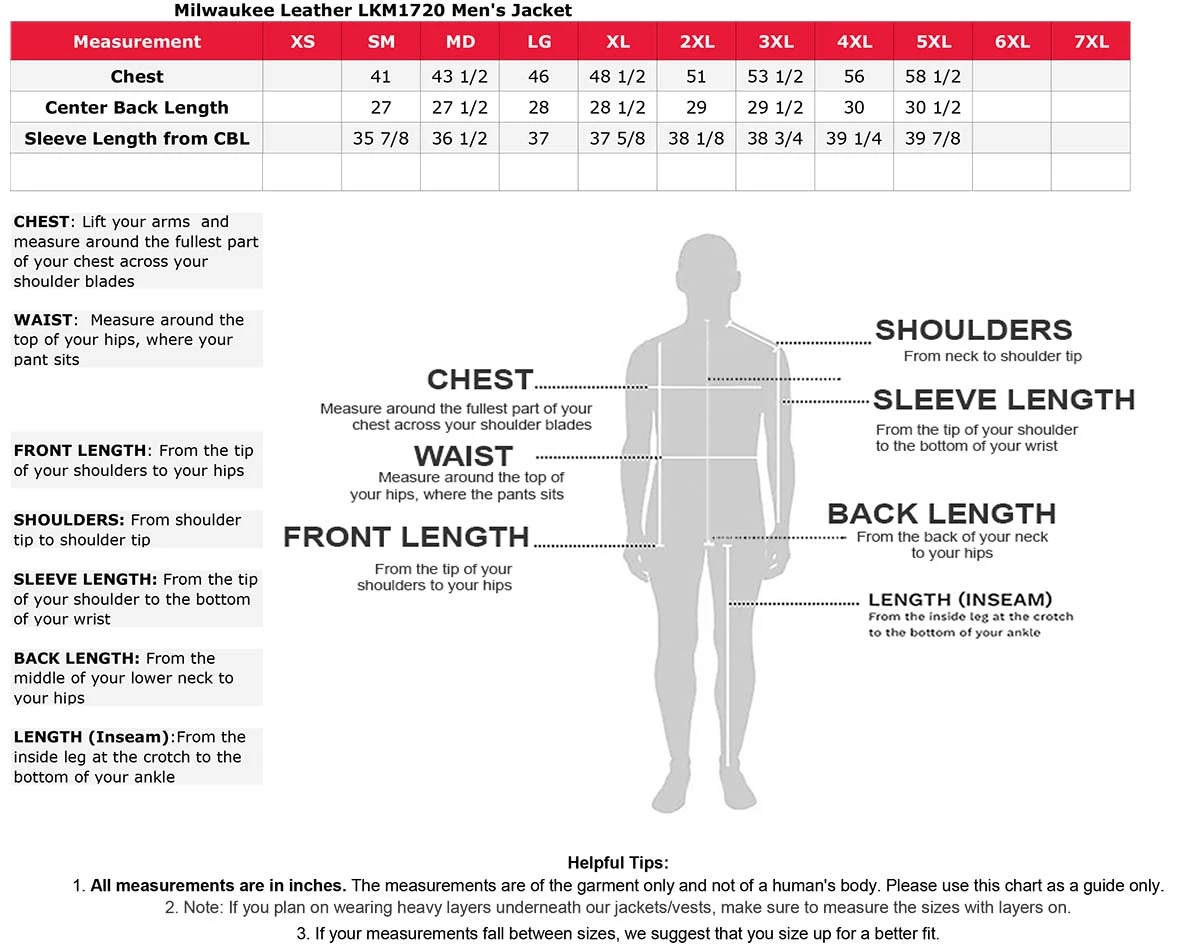 Milwaukee Leather, The Brand Trusted by Over 5 million Bikers Since 1991. Not only do our jackets protect you, they are tough, keep you safe and are loaded with advanced features. Our jackets are crafted with only high-grade premium leather and are full of features such as dual and media pockets, genuine YKK zipper hardware, removable inside liners, ergonomic armor on some jackets, high quality hand stitching by expert craftsmen, Milwaukee Leather Jackets are designed to last.