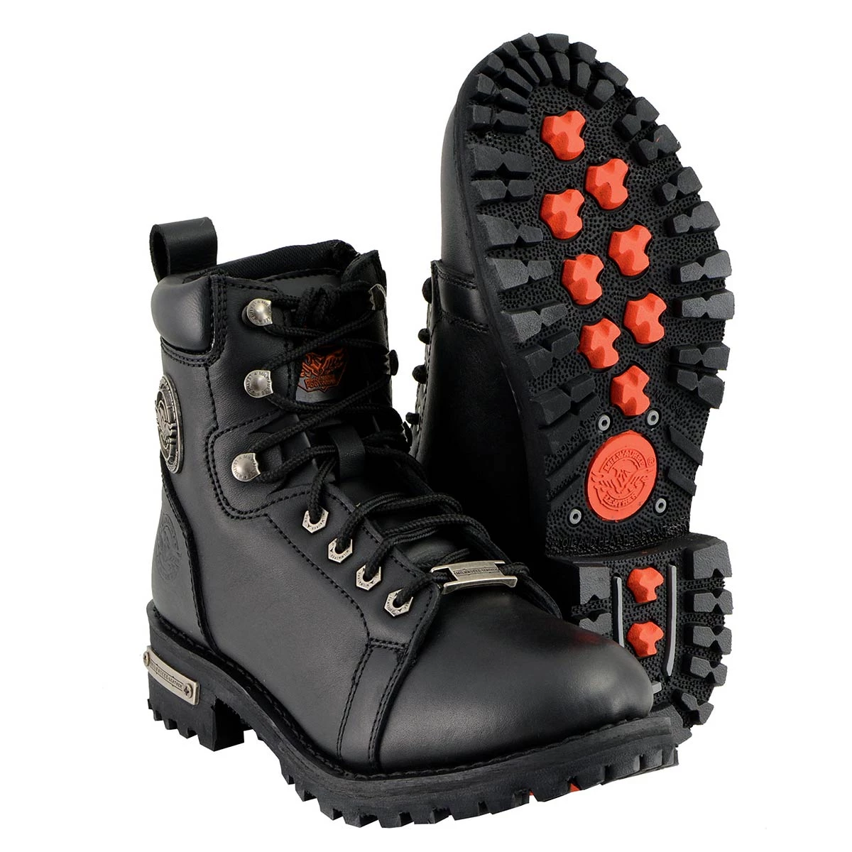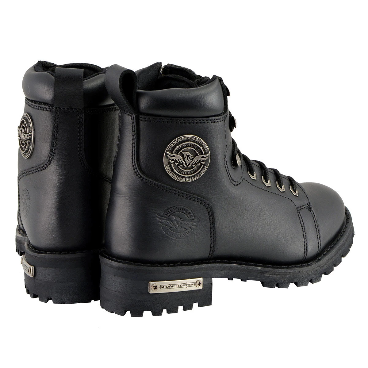 Milwaukee Leather MBL200 Womens Black Lace-Up Boots with Side Zipper